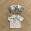 Camiseta de Verão Infantil Manga Curta Gola Polo Estilo Nautica Estilo Coreano Roupa Infantil Roupa de Verão para Bebê Menino Top de Verão para Bebê com Botões