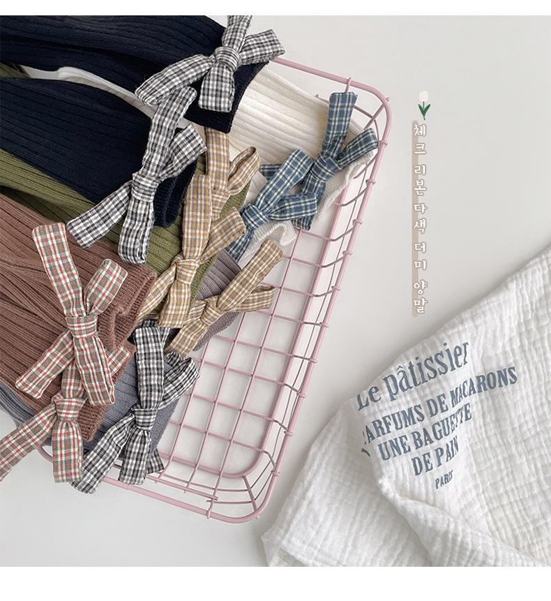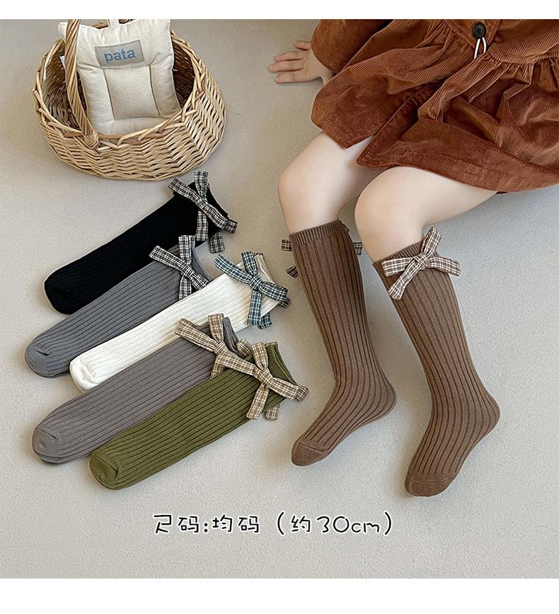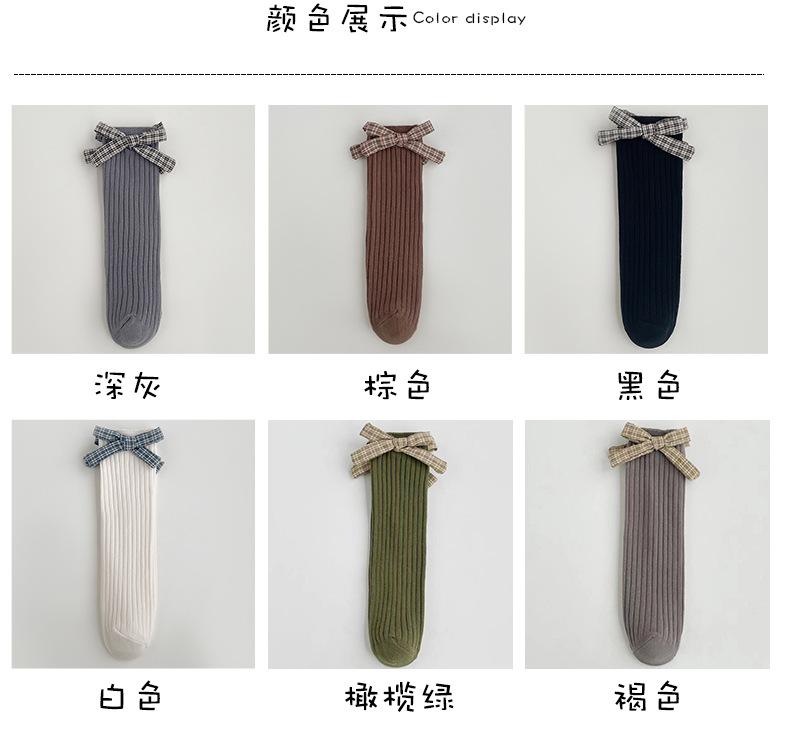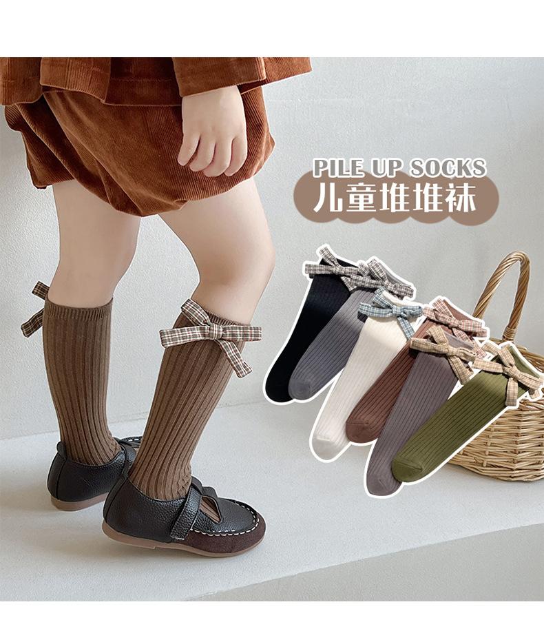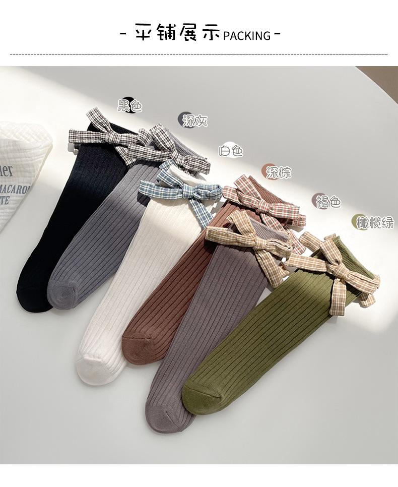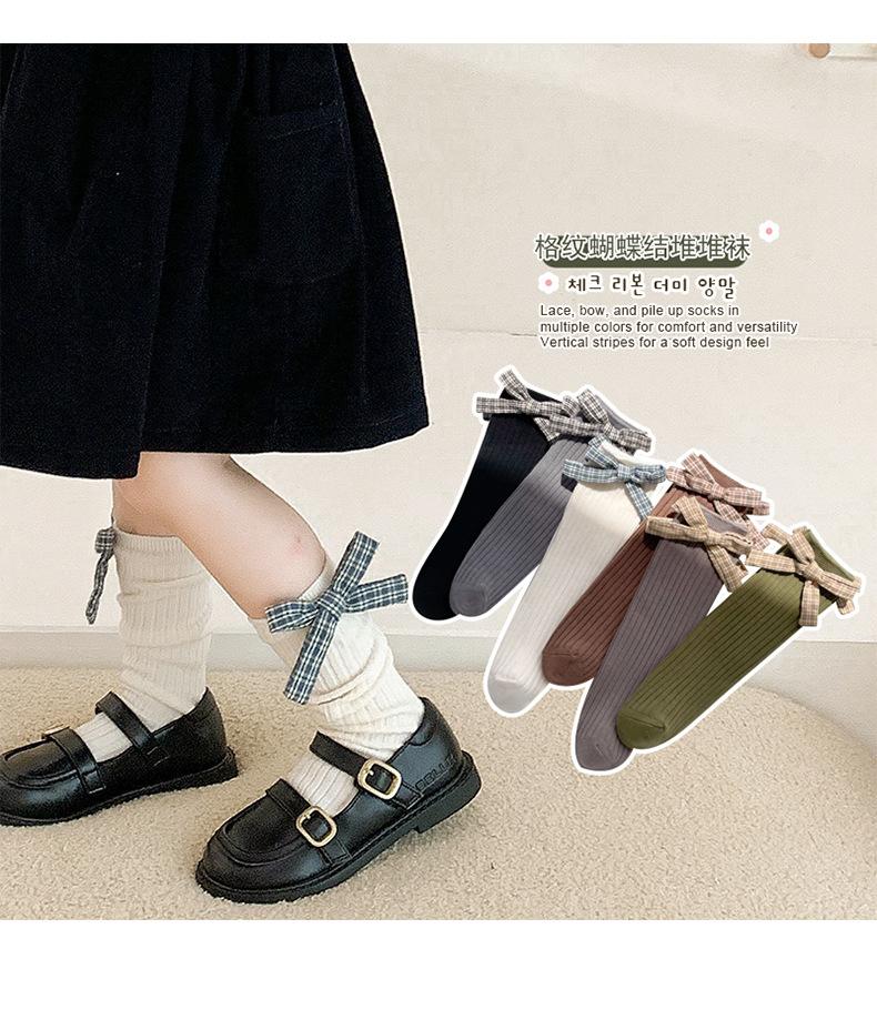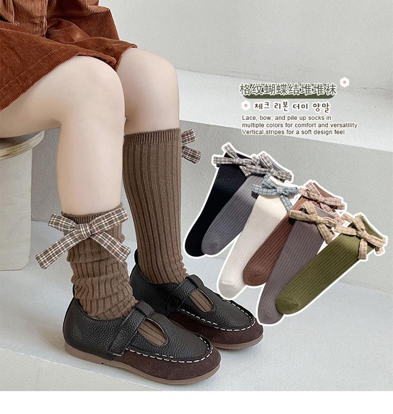 ML23-564 Qinggu small plaid bowknot pile socks-Brown, ML23-564 Qinggu small plaid bowknot pile socks-Black, ML...