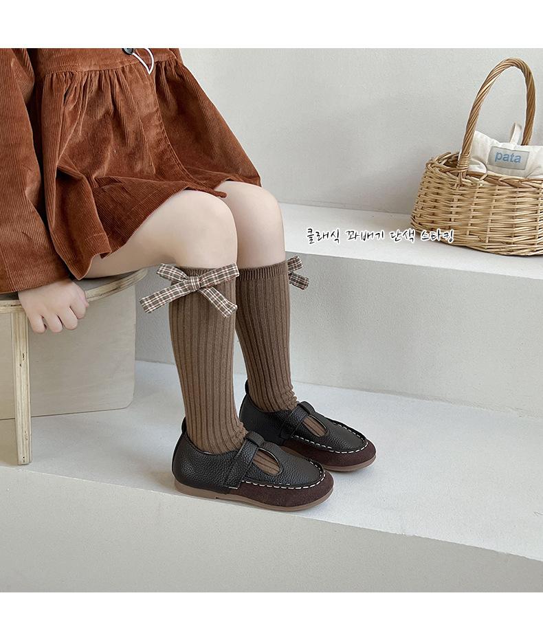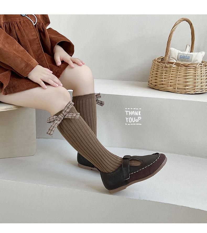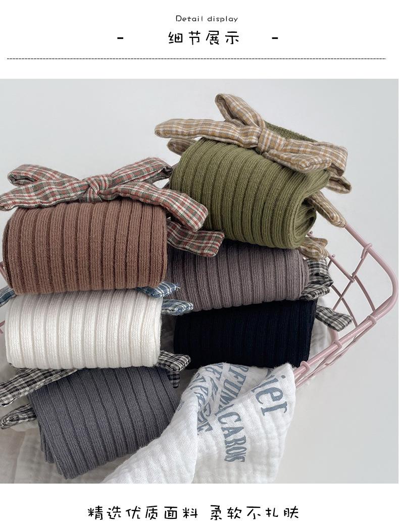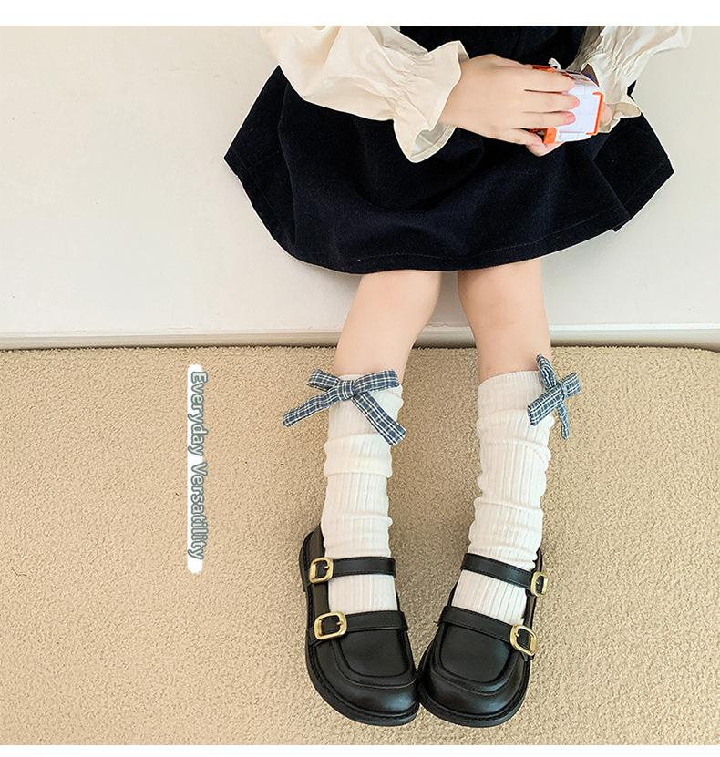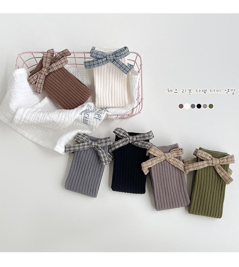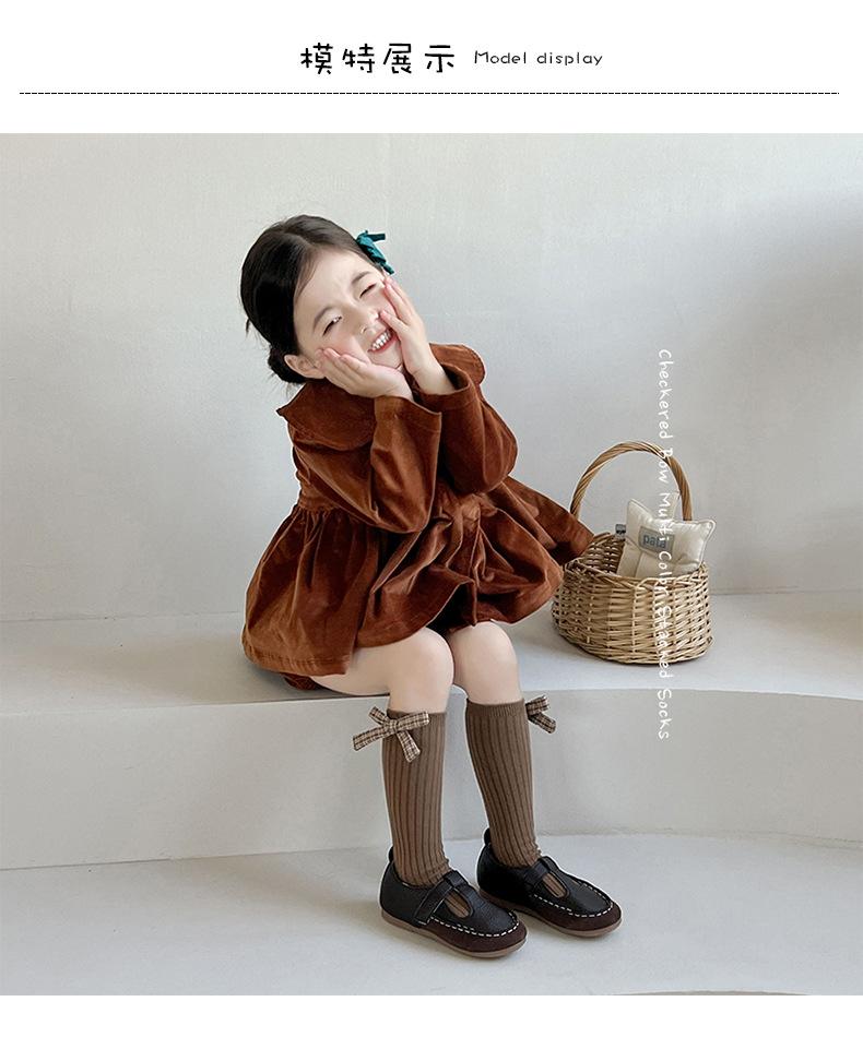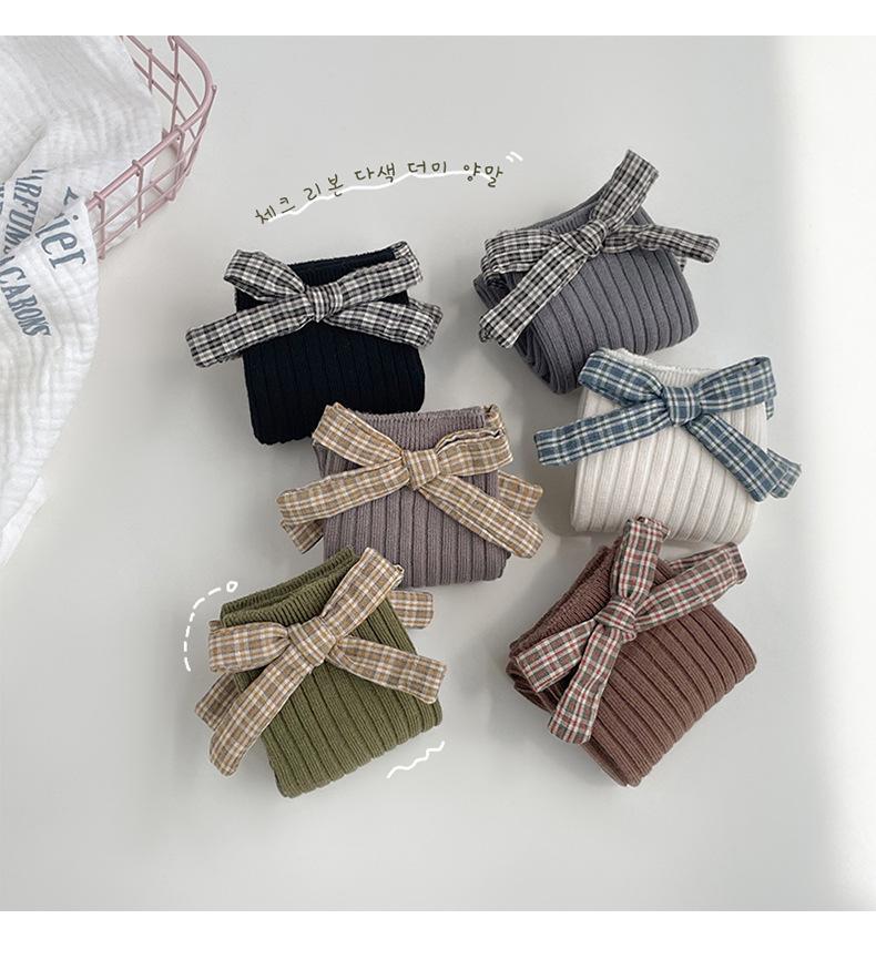 ML23-564 Qinggu small plaid bowknot pile socks-Brown, ML23-564 Qinggu small plaid bowknot pile socks-Black, ML...