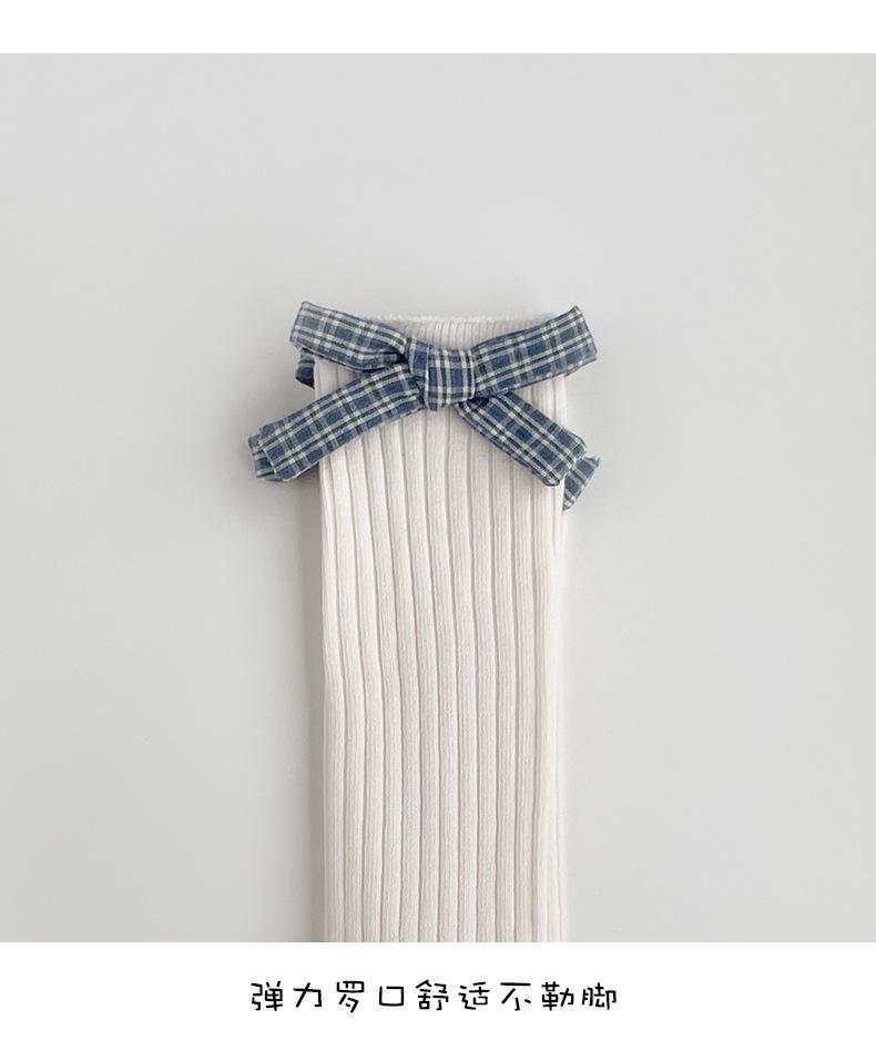 ML23-564 Qinggu small plaid bowknot pile socks-White