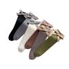 ML23-564 Qinggu small plaid bowknot pile socks-olive green