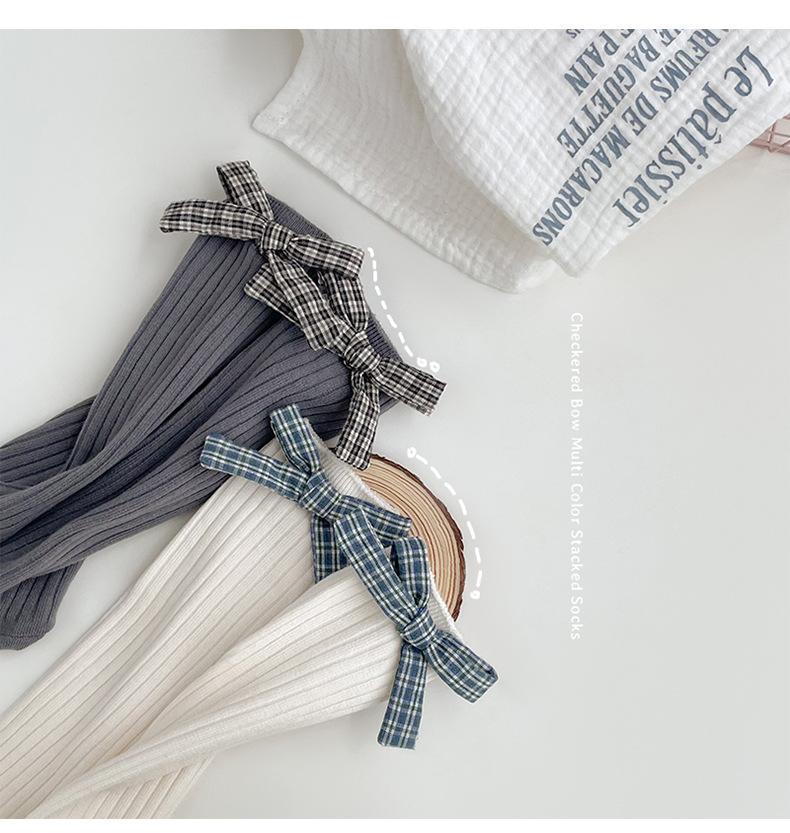 Outono e Inverno novo estilo japonês sólido cor de meninas pilha meias na moda xadrez meias de panturrilha de laço
