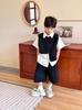 Grey plaid three-piece suit (vest + shorts + shirt + bow tie) 110cm