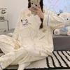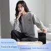 Pijama de manga comprida feminino, de algodão, com calças waffle, gola redonda, pulôver casual solto, manga comprida, roupa de casa feminina