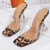 Comércio Exterior Europeu e Americano Tamanho Plus Cristal Chinelos Feminino Roupa Externa Total 6 Cores Tira Transparente Estampa de Leopardo Sandálias de Salto Alto para Mulheres