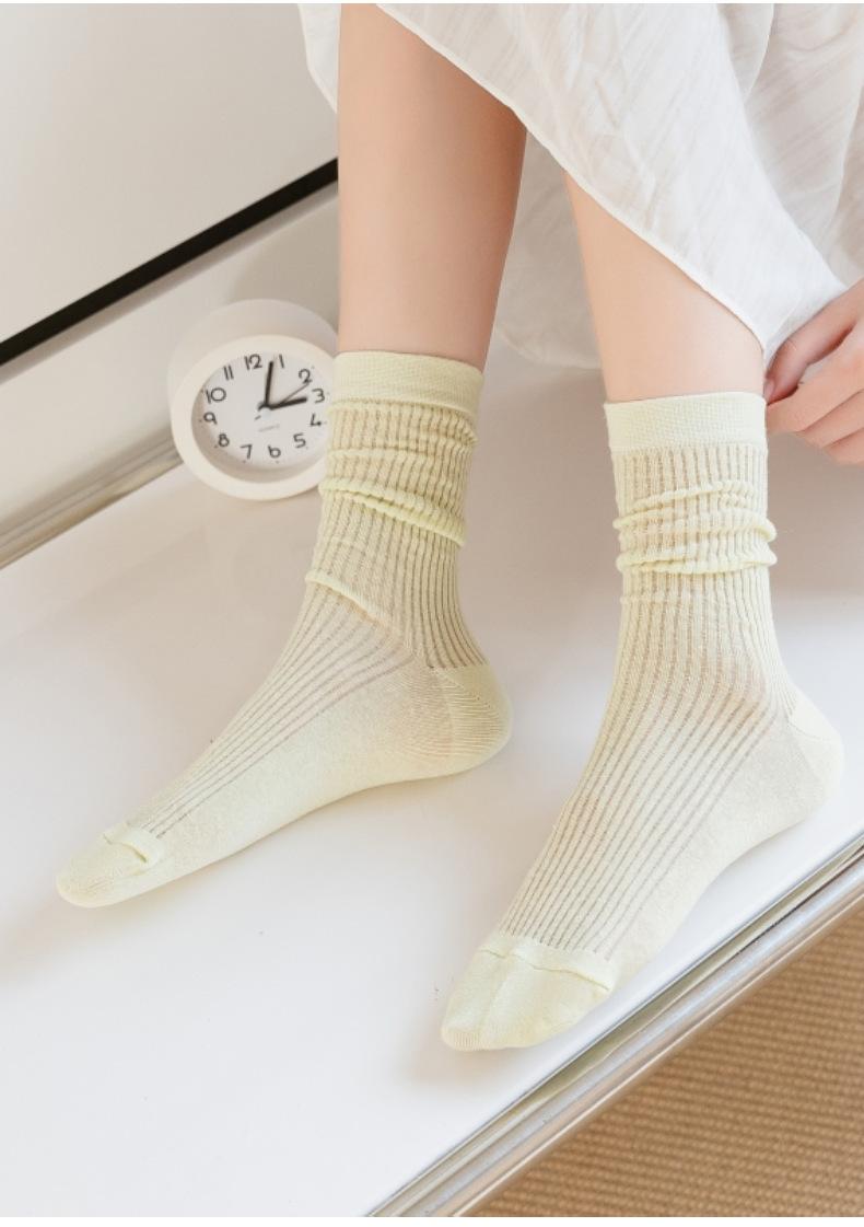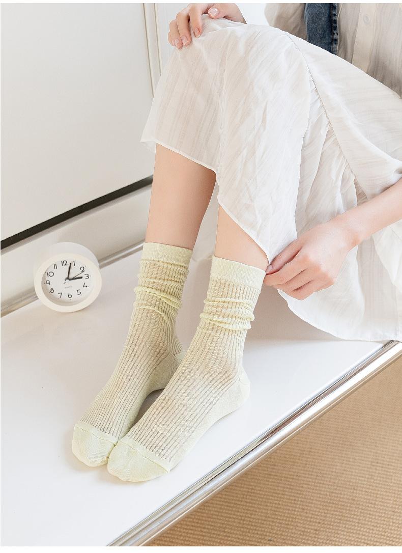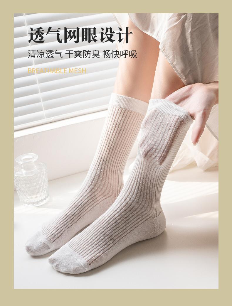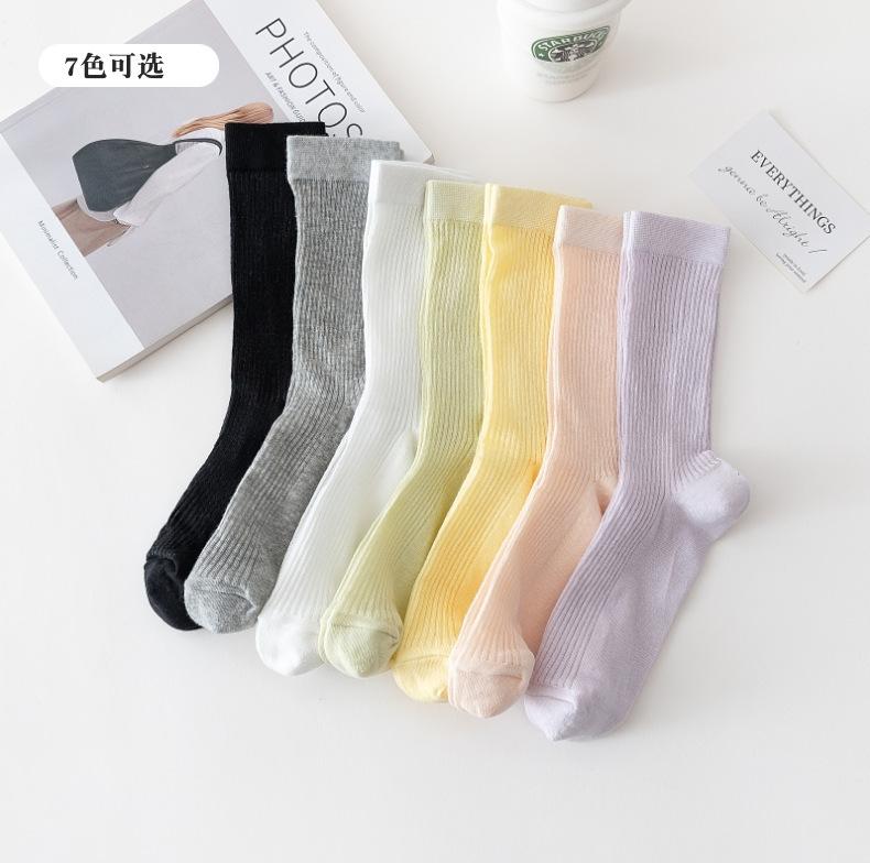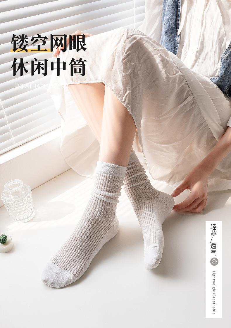 Compre Meias de cor pura meias de panturrilha média das mulheres meias de algodão finas de verão meias finas de algodão estilo japonês meias magras populares malha oca pilha meias no atacado no Joom.pro
