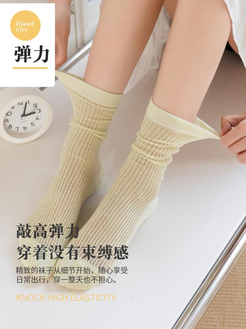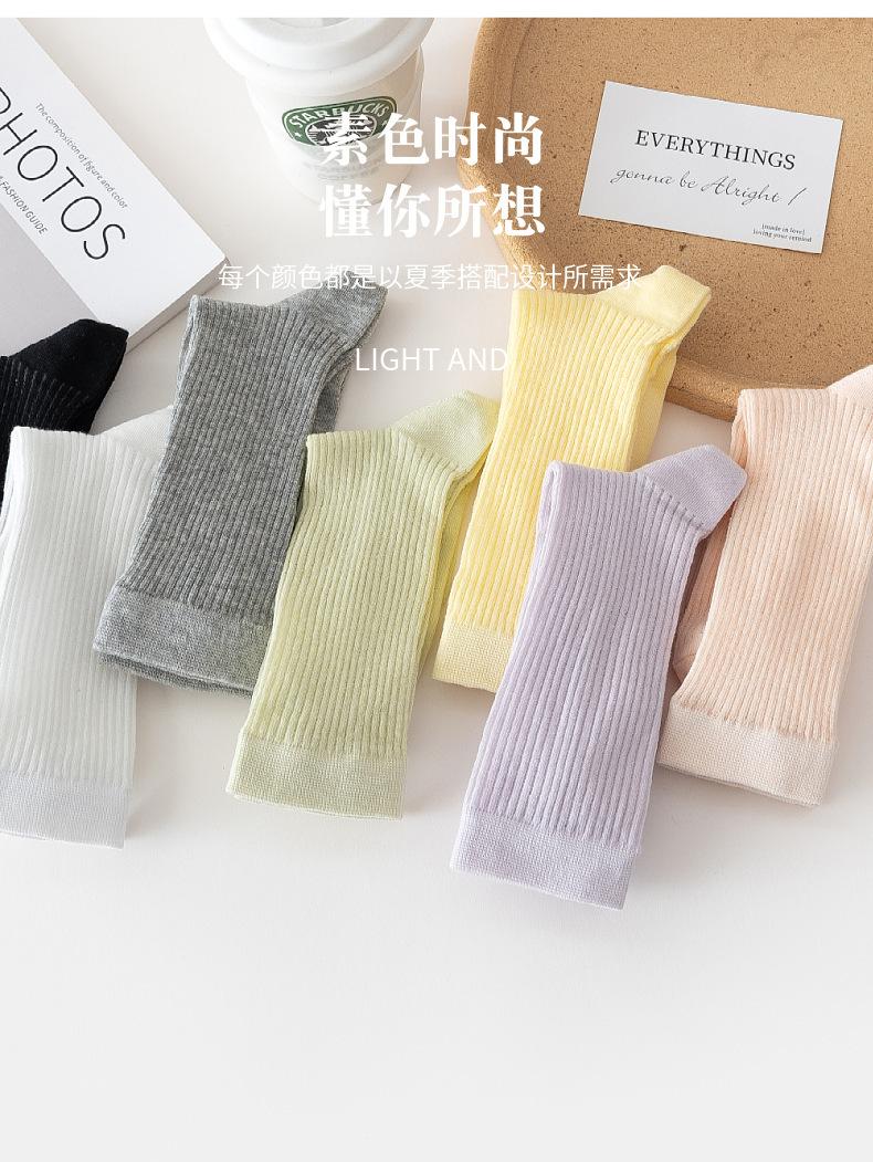 Meias de cor pura meias de panturrilha média das mulheres meias de algodão finas de verão meias finas de algodão estilo japonês meias magras populares malha oca pilha meias