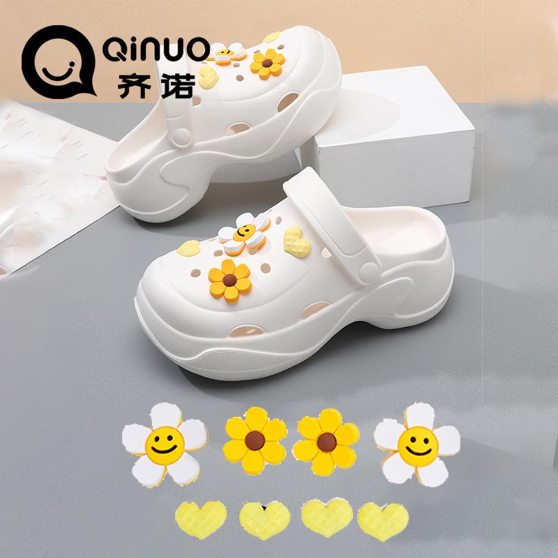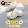 Novo amarelo girassol buraco sapatos flor smiley rosto flor flor fivela sapato bonito desenhos animados acessórios pvc diy removível diy