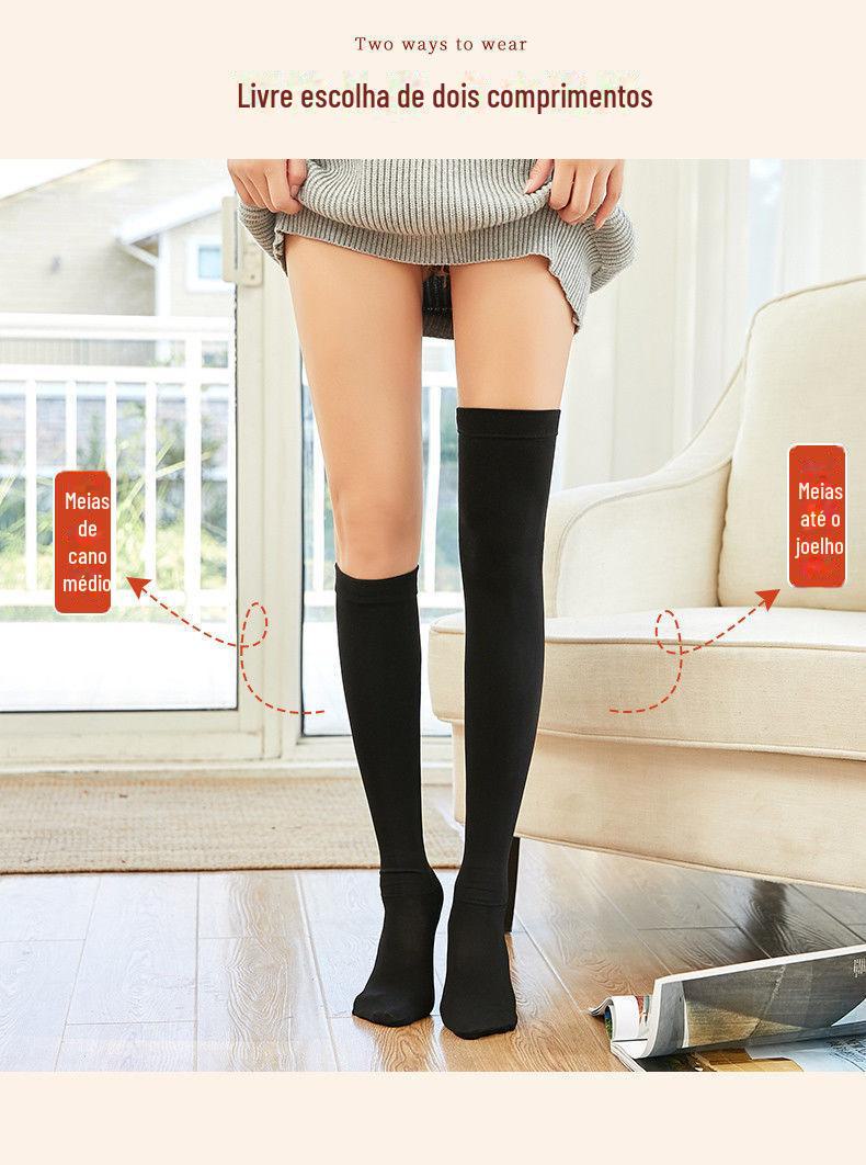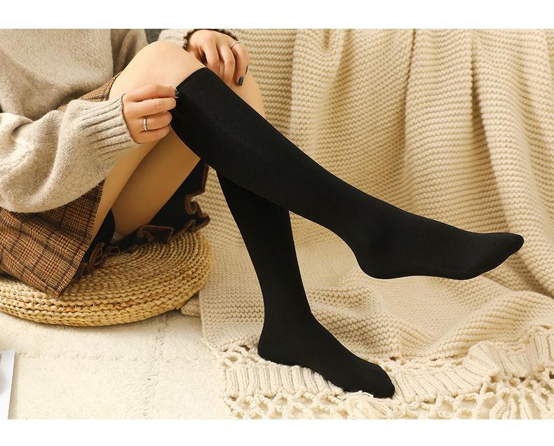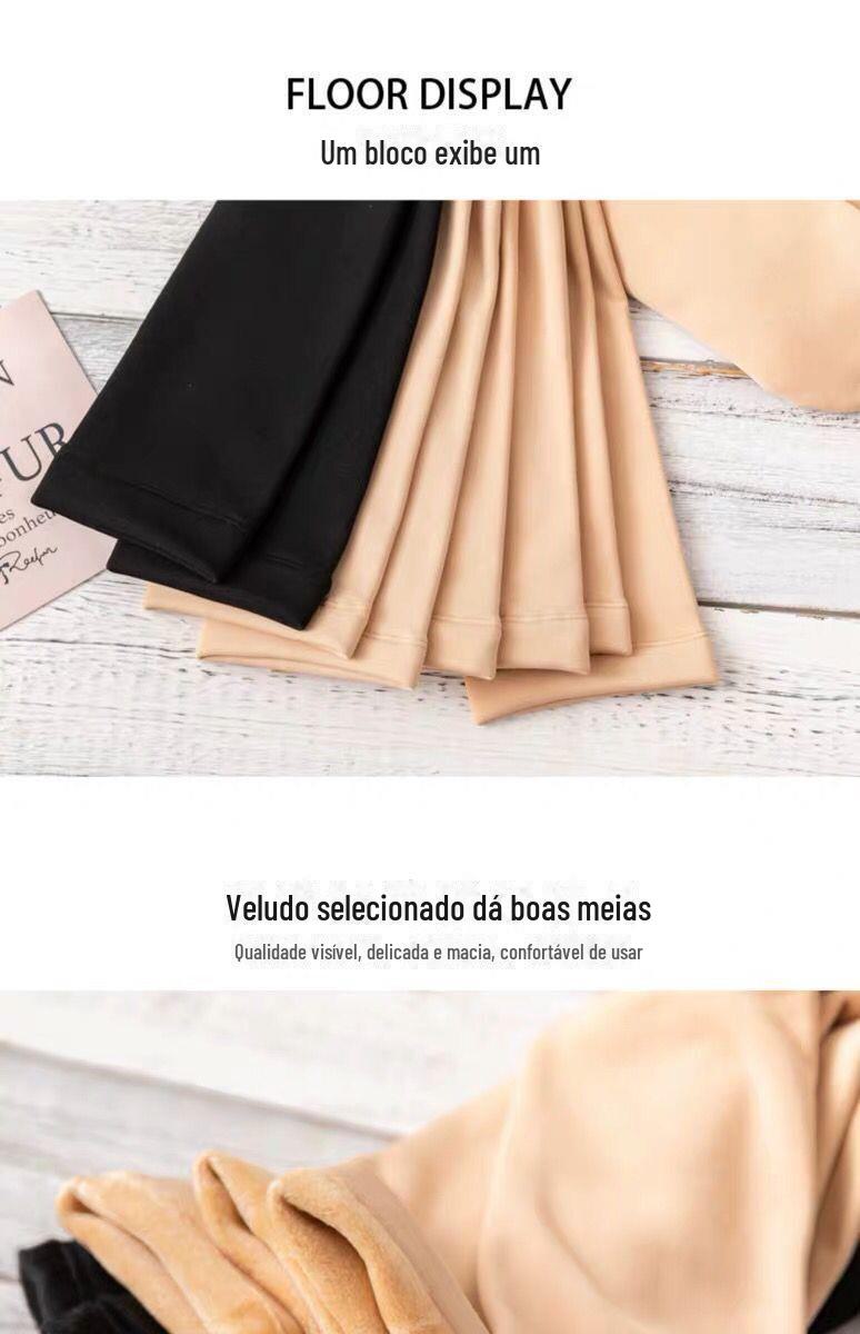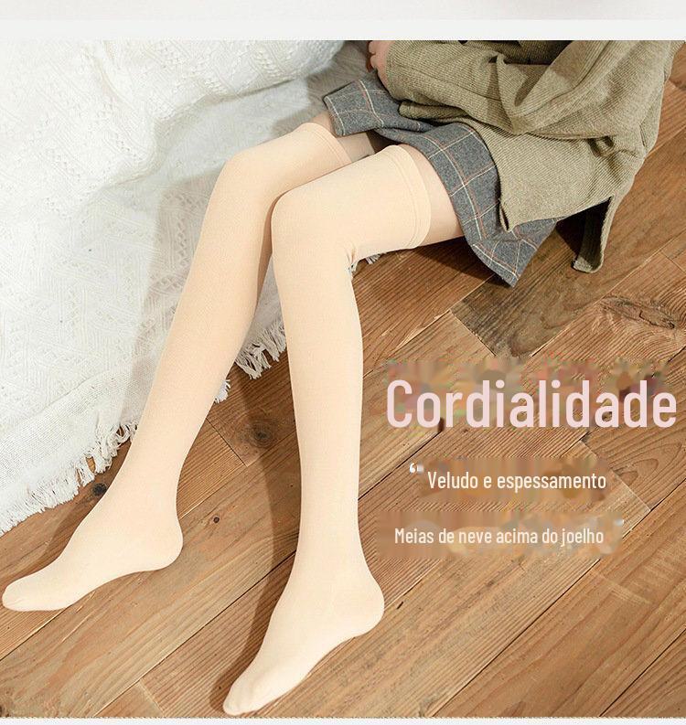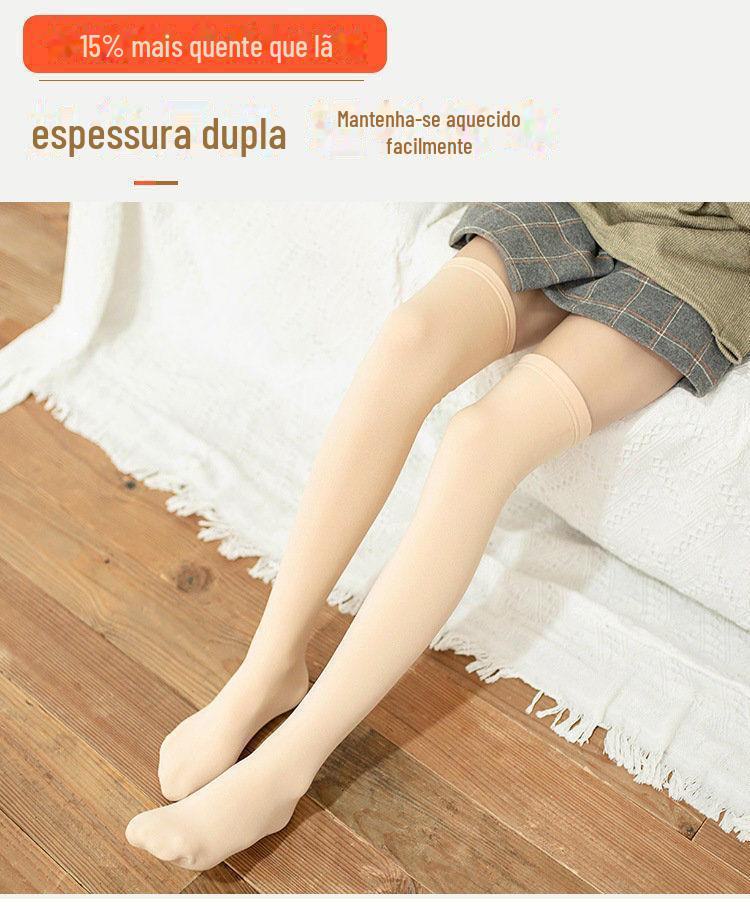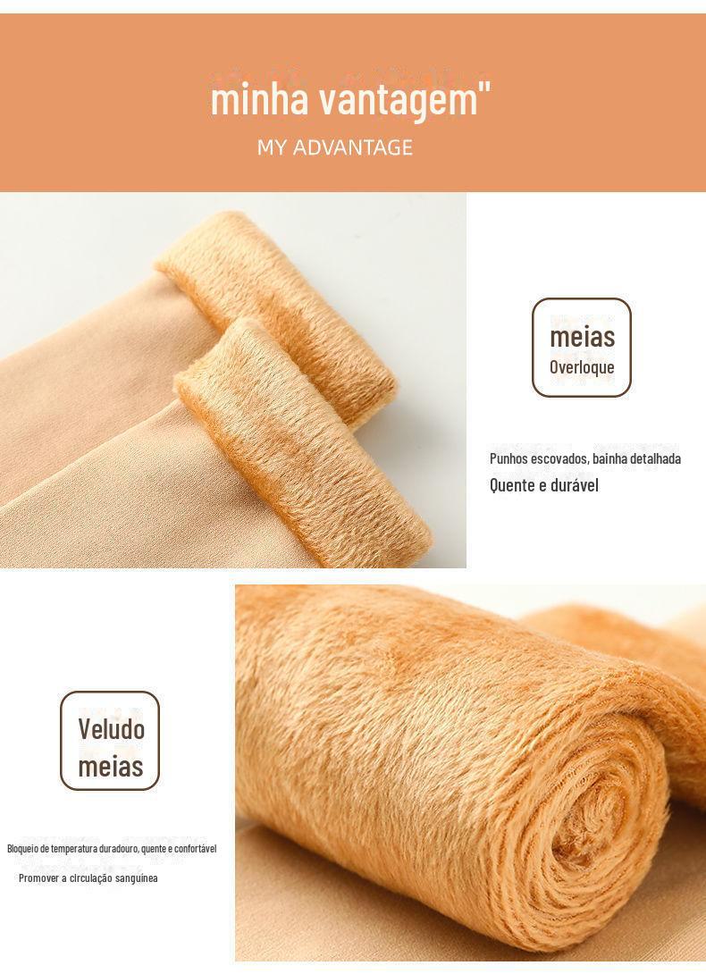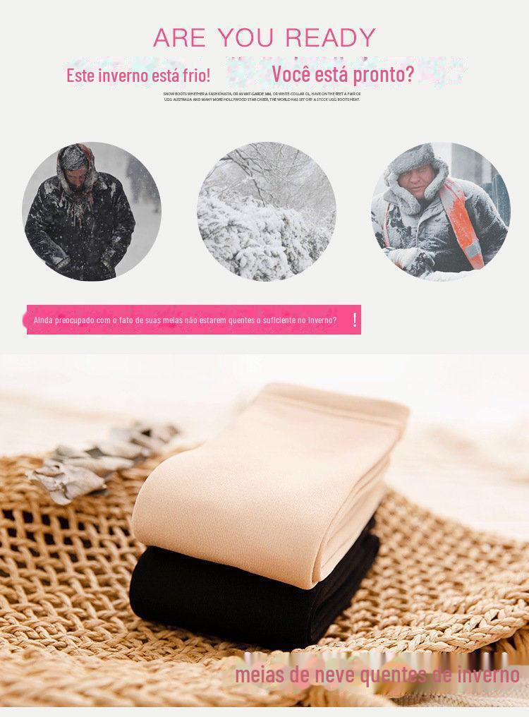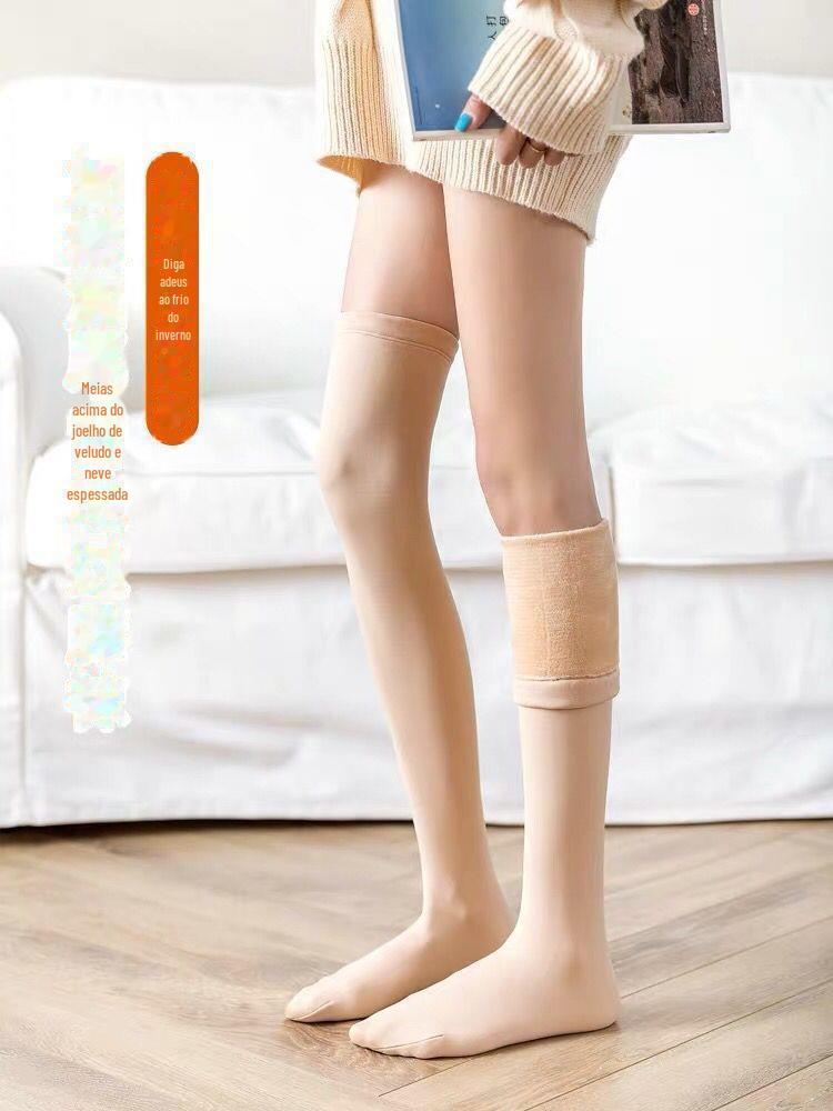 Meias de neve de outono e inverno, meias acolchoadas de veludo feminino, meias de bezerro quentes, artefato de perna clara cor de carne, meias de piso de tubo médio