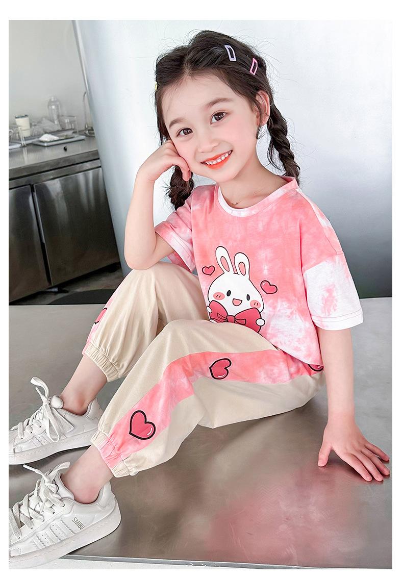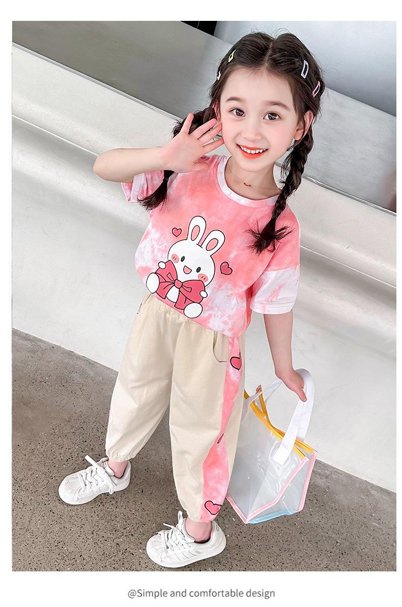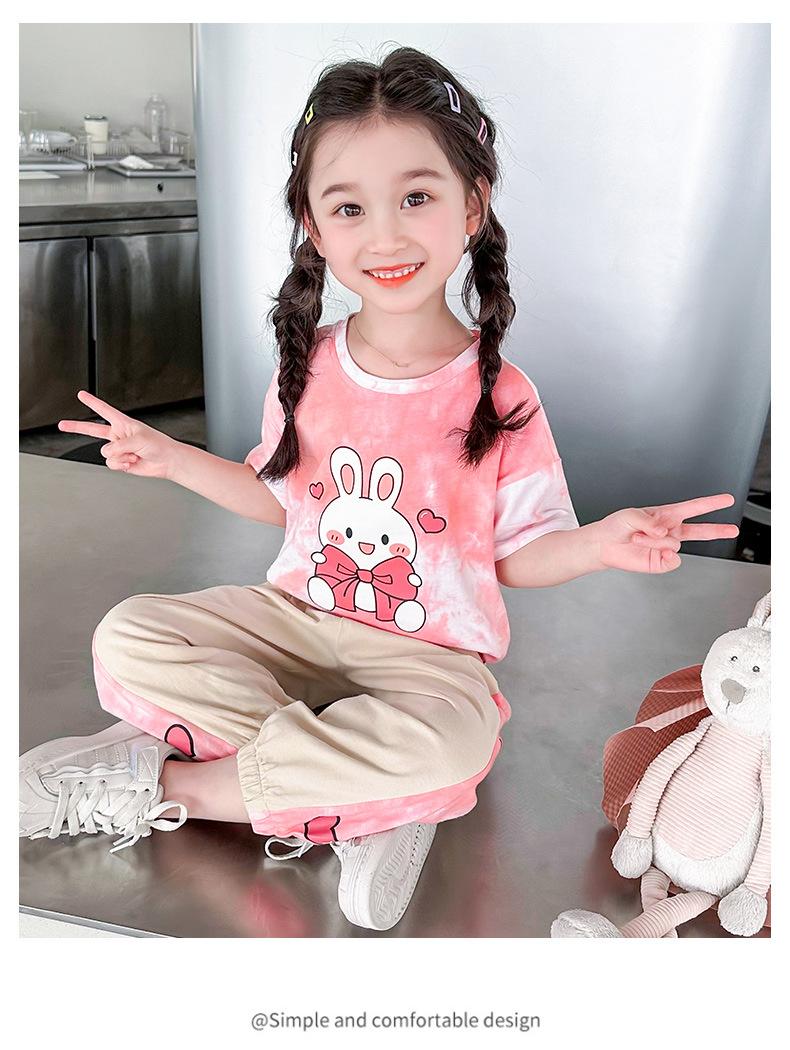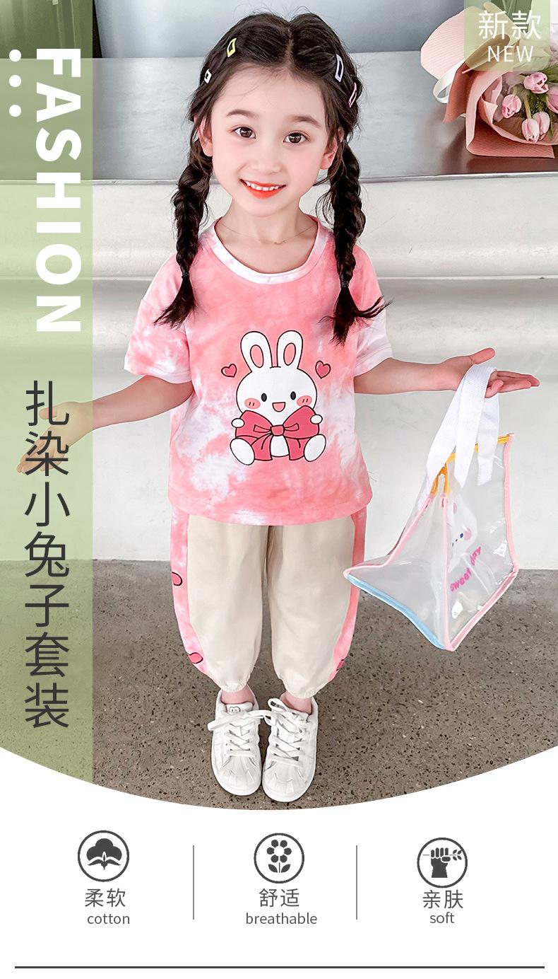 Bebê feminino terno estilo estrangeiro 2024 novo verão infantil online popular moda infantil estilo estrangeiro tie dye coelho maré