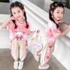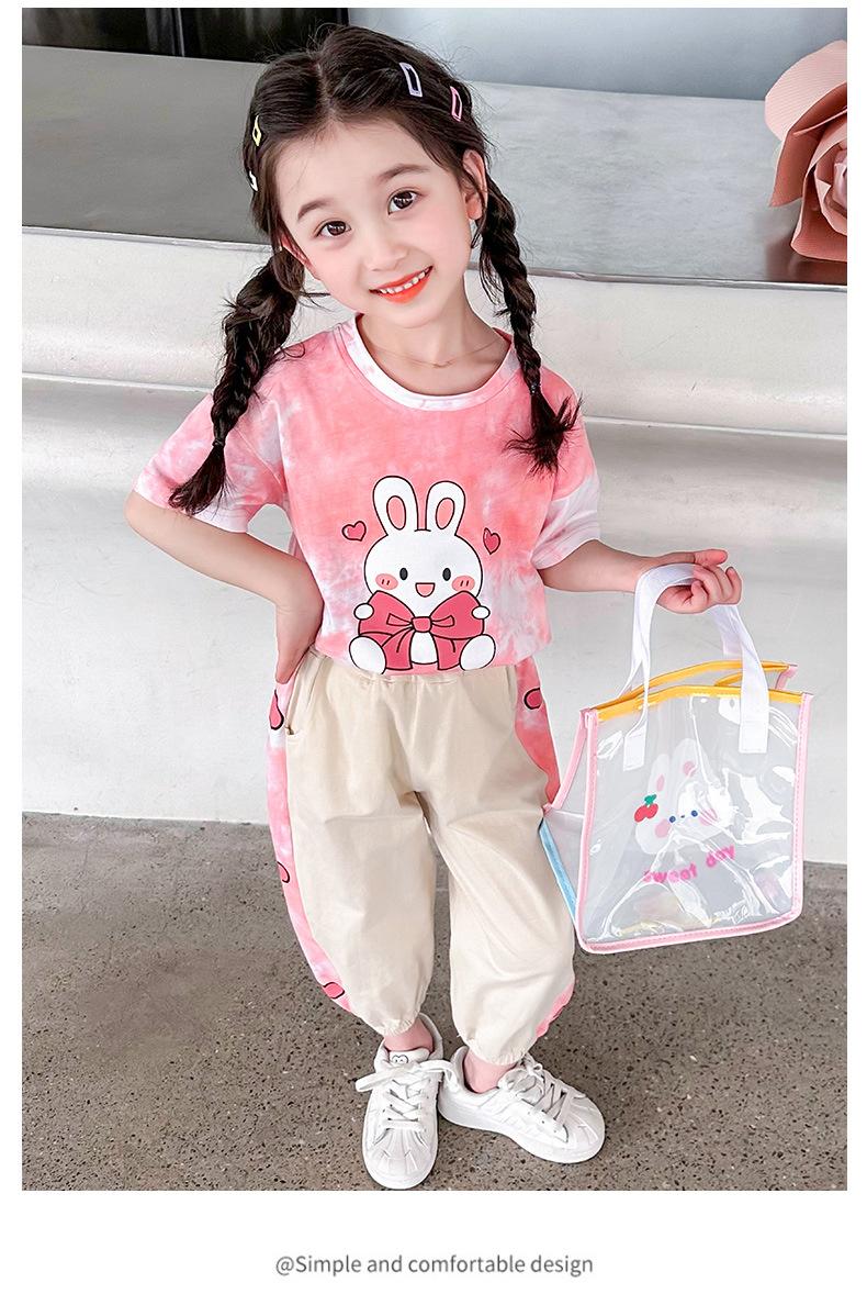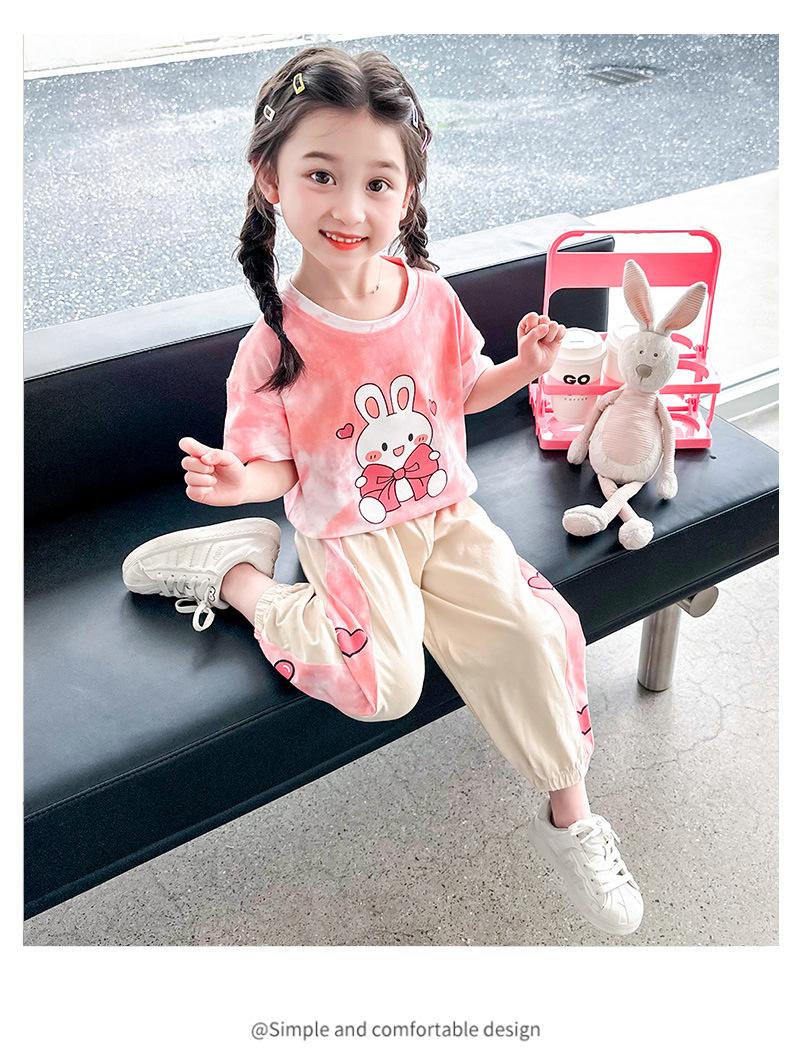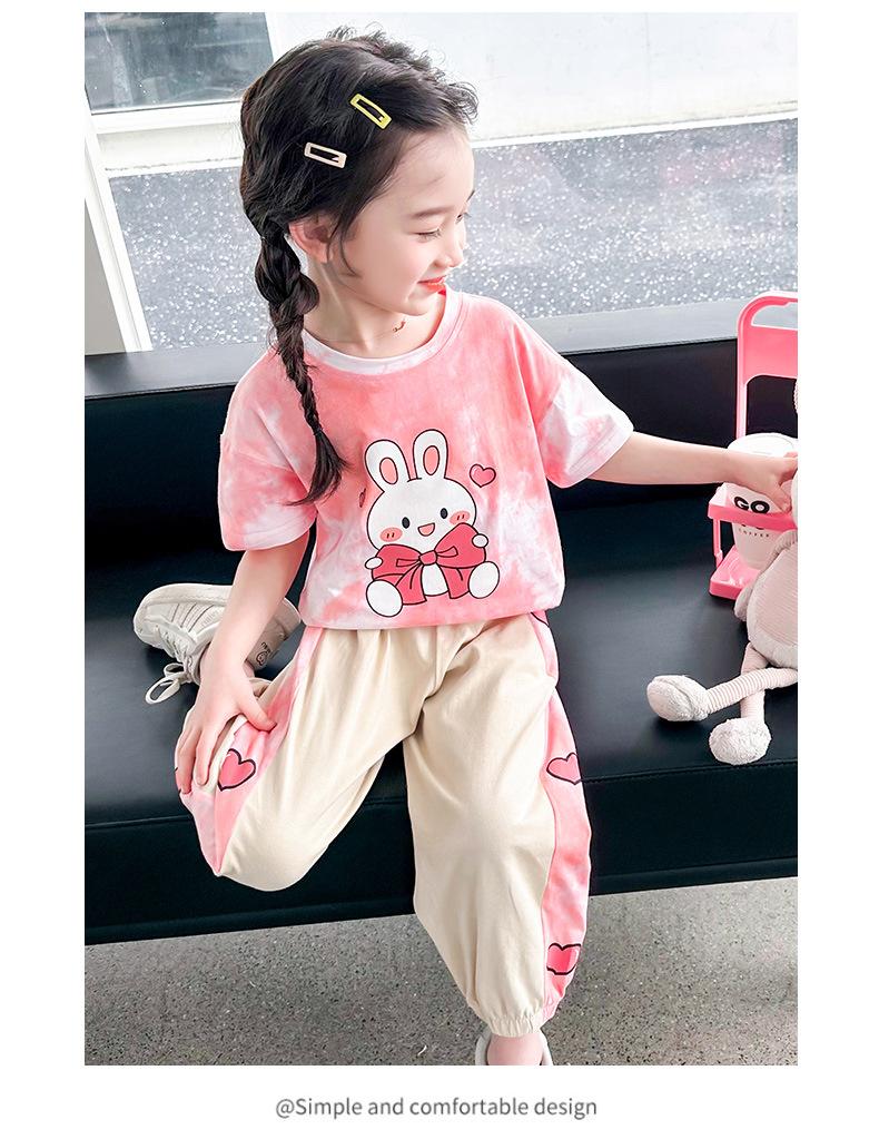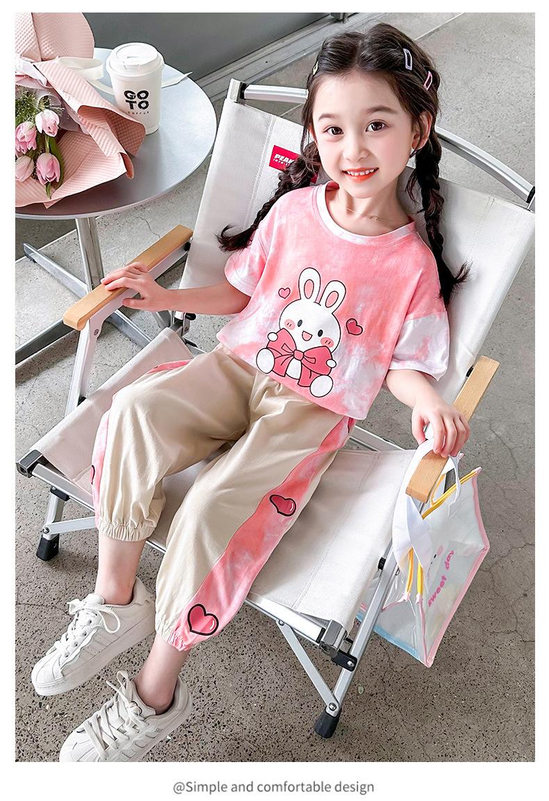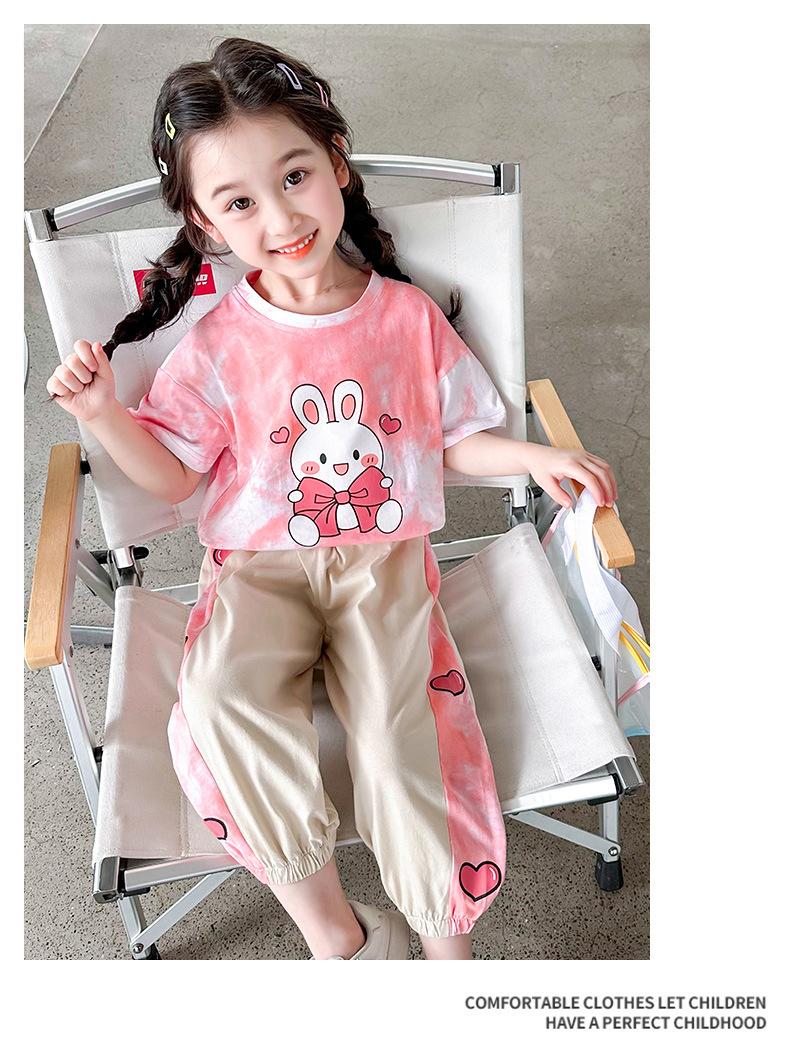 Bebê feminino terno estilo estrangeiro 2024 novo verão infantil online popular moda infantil estilo estrangeiro tie dye coelho maré