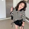 Camiseta listrada de manga curta com gola polo para meninas, roupa infantil, verão 2025, camisa feminina fina de malha Treasure para crianças