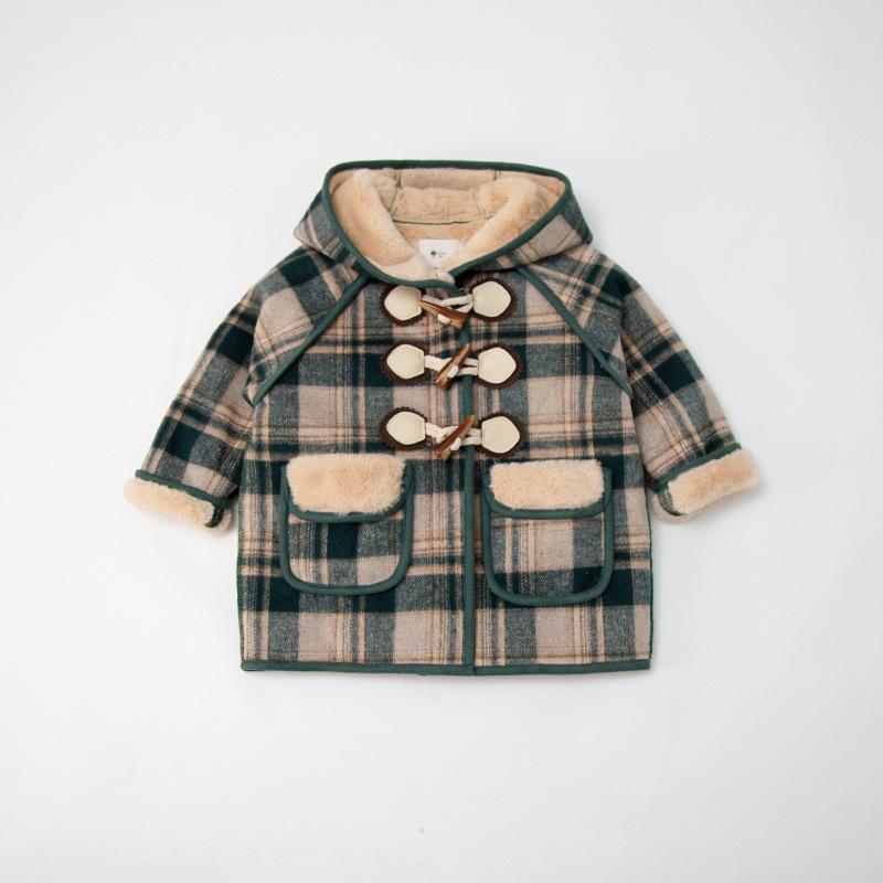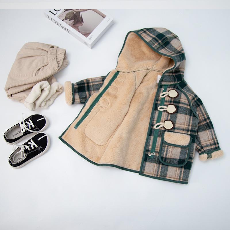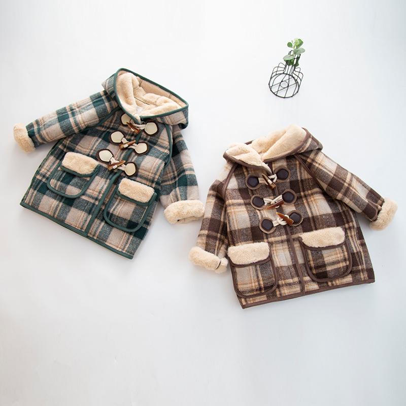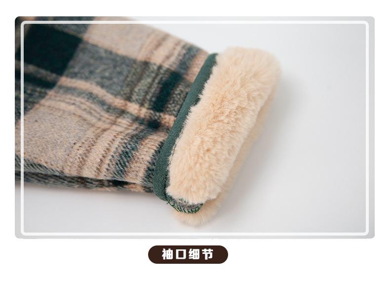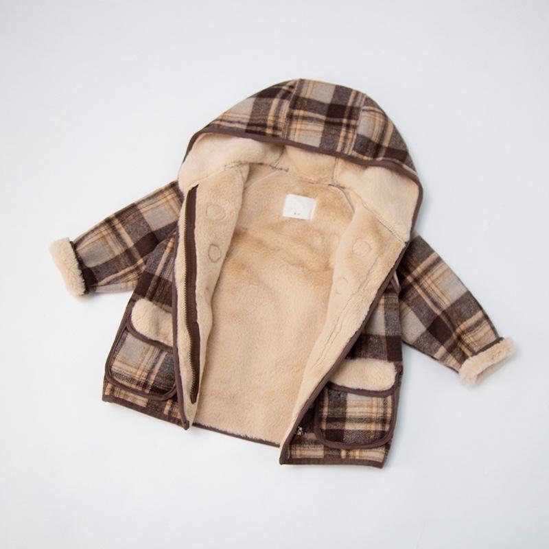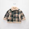 Casaco de lã para meninos Casaco de lã Outono e inverno Bebê infantil Infantil forrado de lã de uma peça Lã xadrez de rua Roupas de inverno