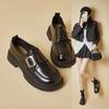 Mocassins de Couro Genuíno para Mulheres 2024 Bico Redondo Preto Estilo Pequeno Fragrante Sapatilhas Estilo Japonês Jk Sapatos de Couro Pequenos para Mulheres Primavera Novos Sapatos Femininos