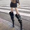 2023 novas botas de cano alto feminino salto alto pontiagudo botas Knight patente couro nicho calças botas