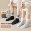 Meias de lã coral femininas, meias de cano médio, outono e inverno, forradas com lã, grossas, quentes, peludas, para dormir no chão, meias lua, femininas