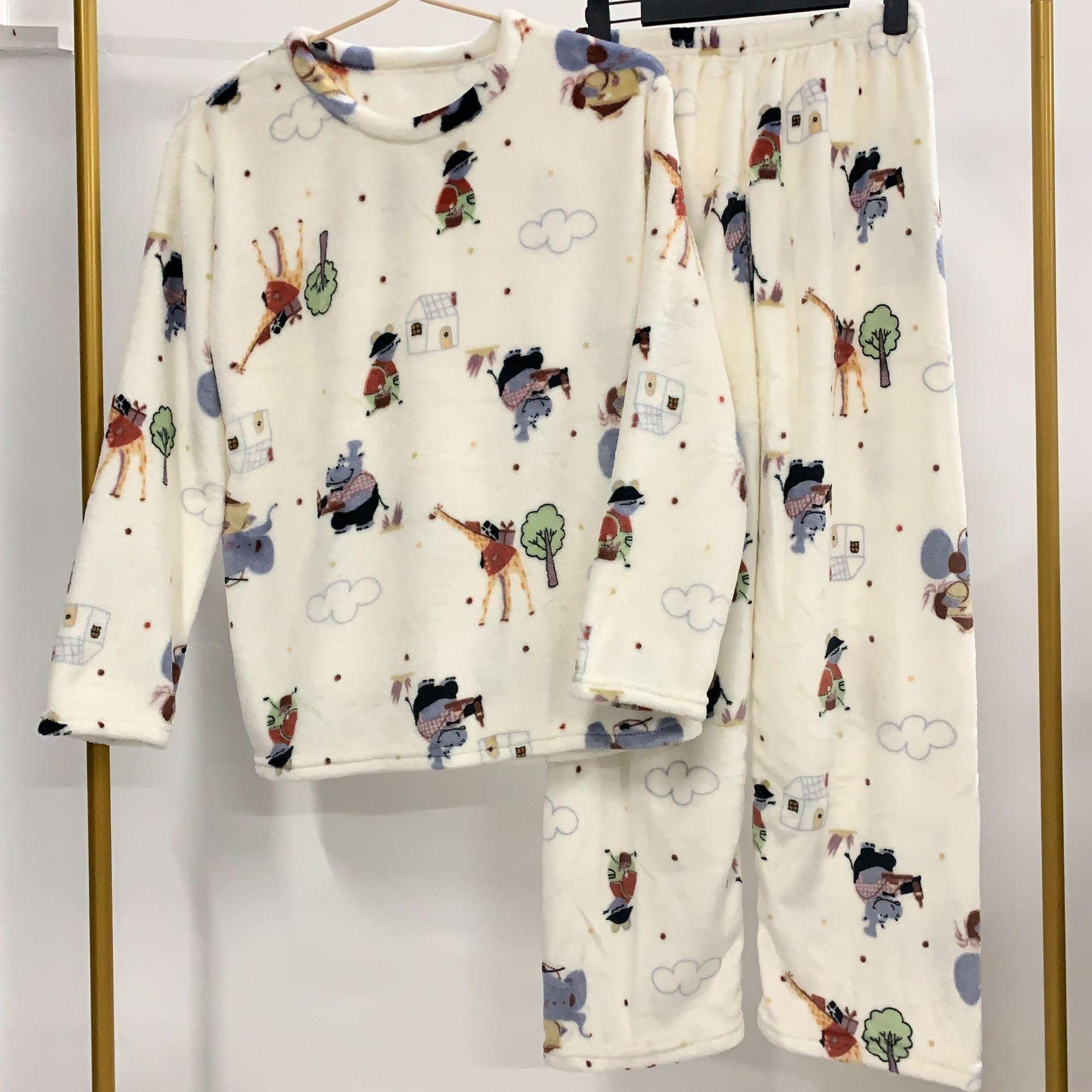 Pijamas das mulheres novo desenho animado girafa flanela outono e inverno lã coral engrossado quente casual home suit