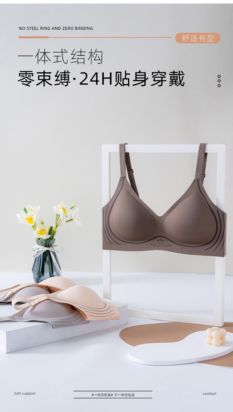 Nova roupa interior de seda sem costura feminina bela volta estilingue integrado copo de seda amoreira confortável sutiã feminino nu