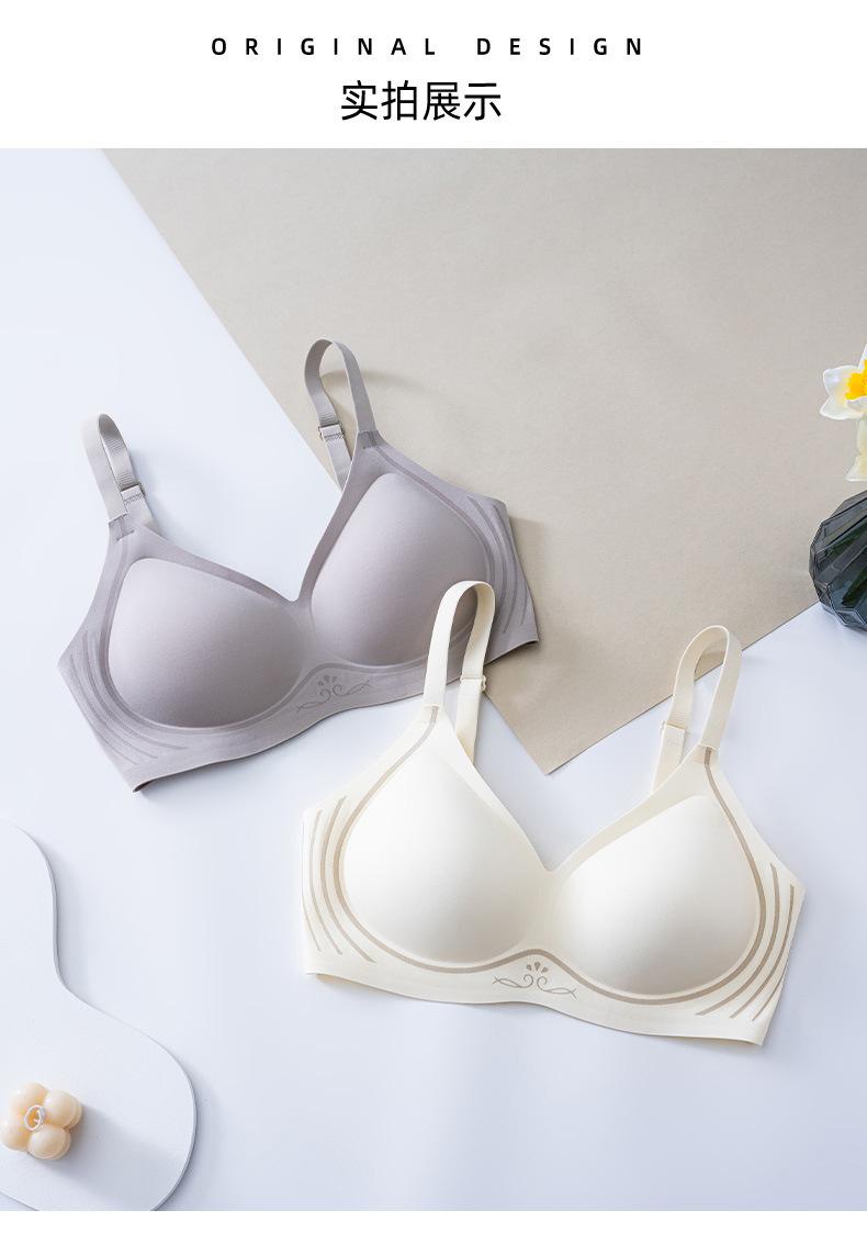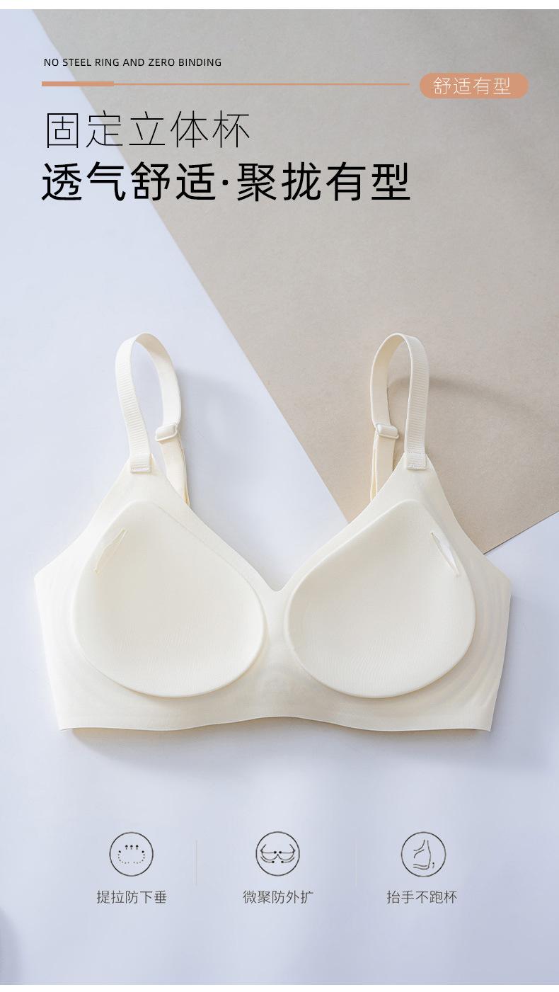 Verão fino copo fixo de seda gelo sem costura roupa interior feminina sem anel de aço dormir peito grande pequeno colete estilo sutiã confortável