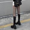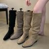 Botas de Camurça de Cano Grosso com Pregas para Mulheres 2024 Verão Novo Fivela de Metal Botas Western Botas de Salto Grosso Botas de Cavaleiro