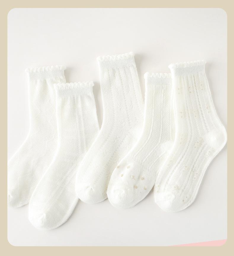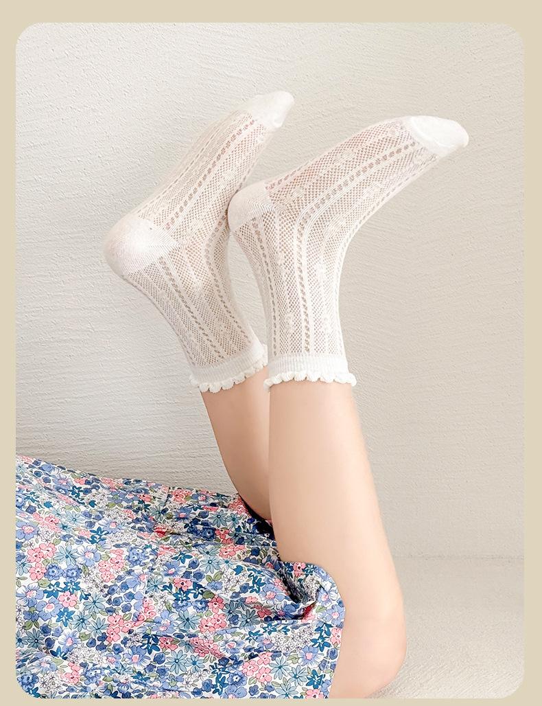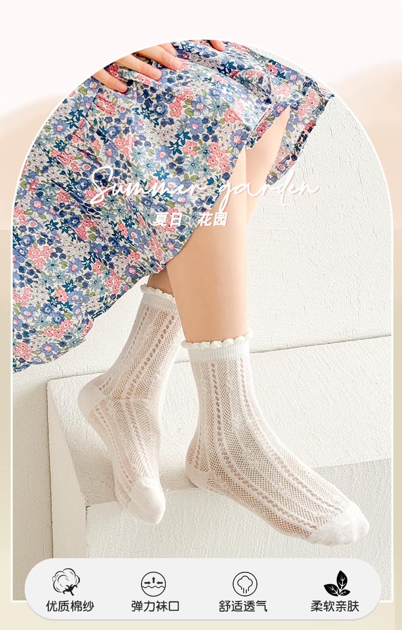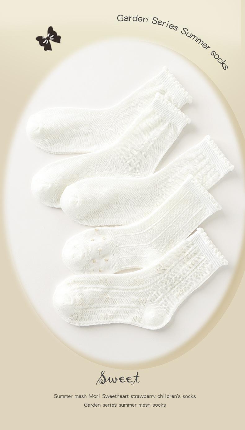 Meias de verão para meninas, meias finas de algodão, leves e respiráveis, lolita, branco, doce, estilo princesa, meias infantis