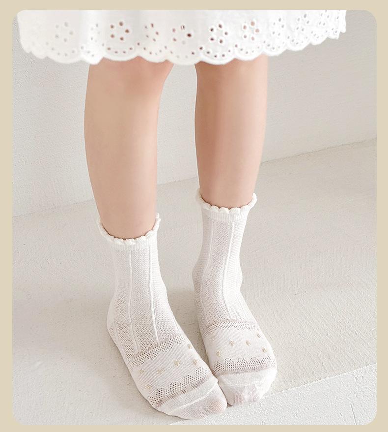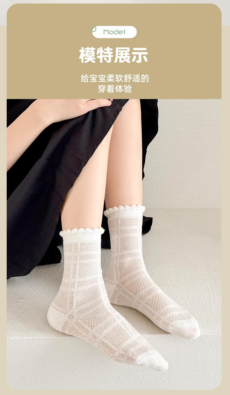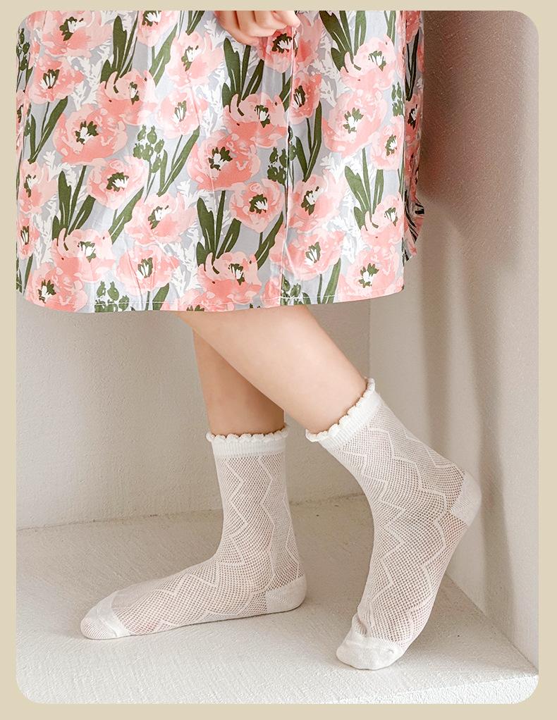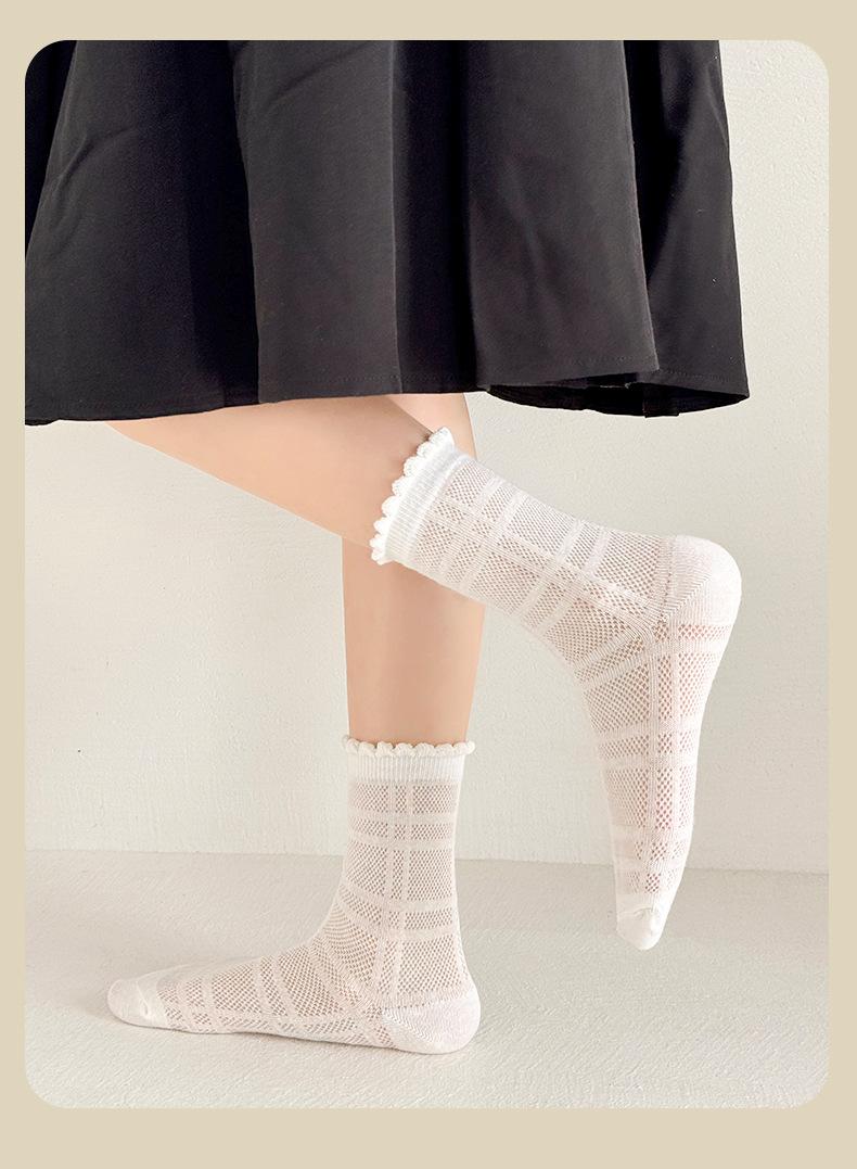 Meias de verão para meninas, meias finas de algodão, leves e respiráveis, lolita, branco, doce, estilo princesa, meias infantis