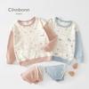 Terno de manga comprida infantil Chengbao Estilo Ocidental 2024 Novo Vestuário de Primavera e Outono para Homens e Mulheres Vestuário Infantil para Esportes de Lazer Infantil Médio e Grande