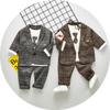 Roupas infantis outono mangas compridas terno três peças meninos 'Plaid britânico terno vestido cabelo geração
