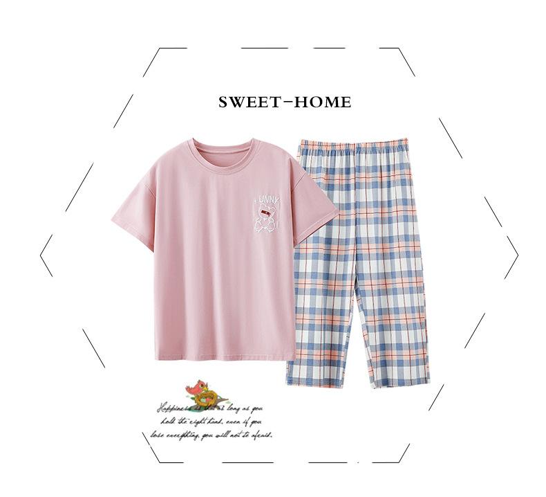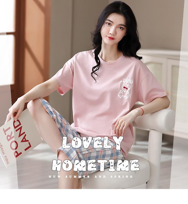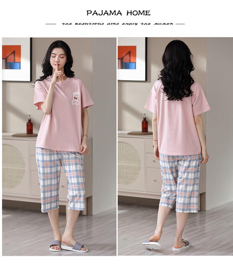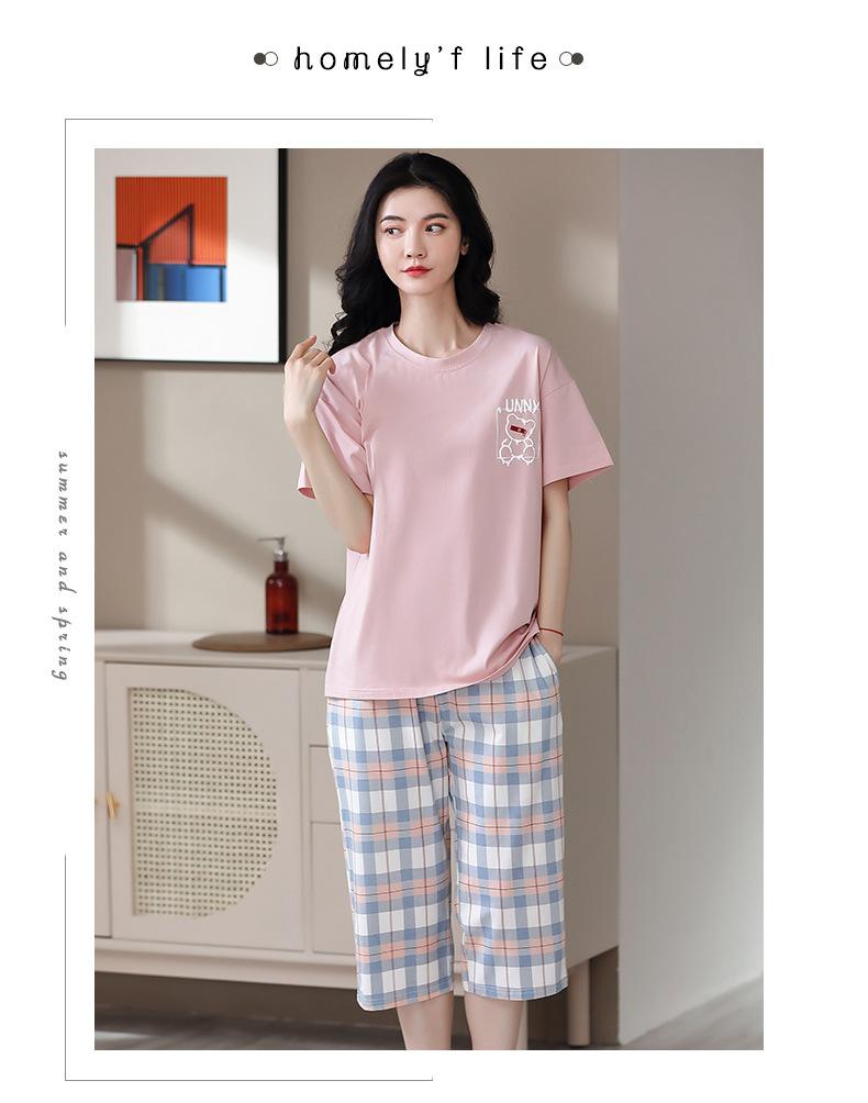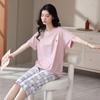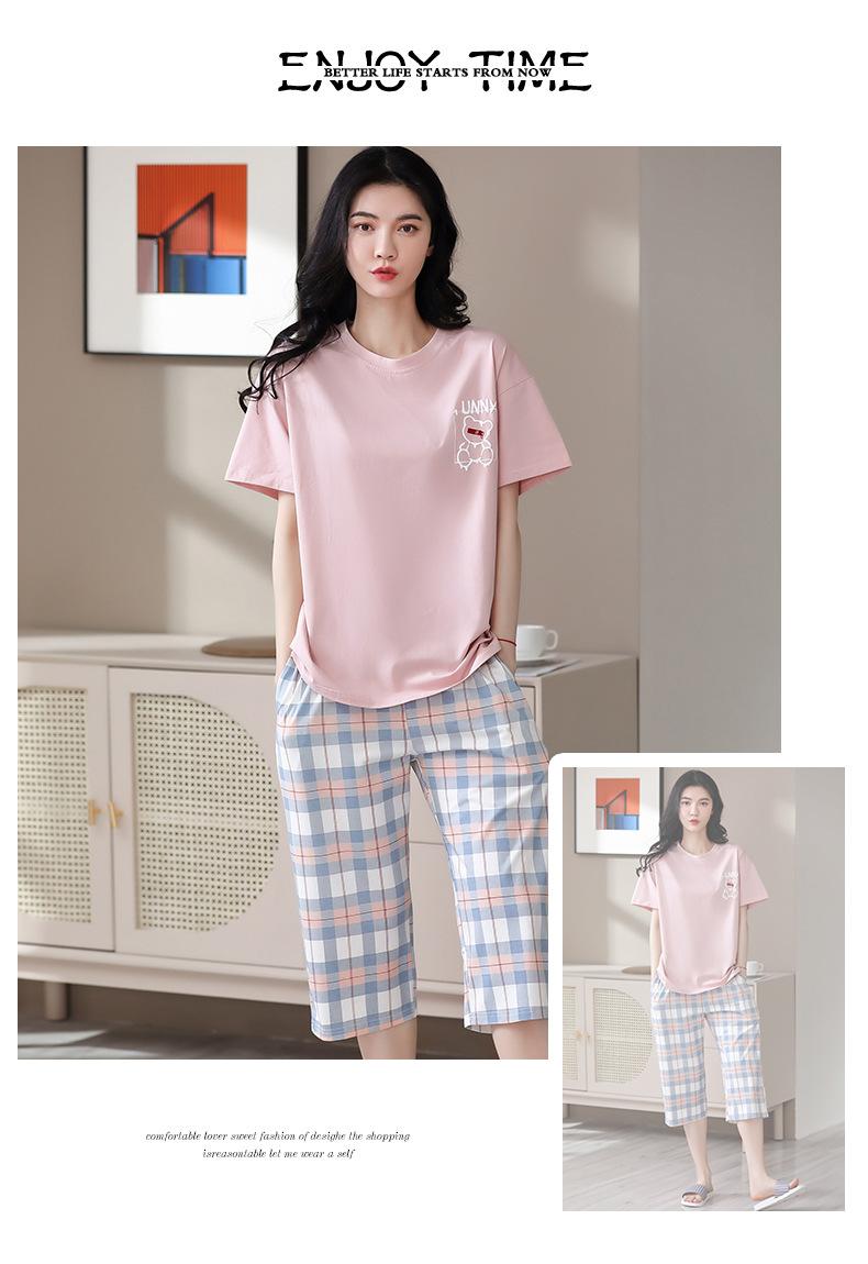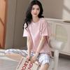 Primavera e verão algodão pijamas mulheres de manga curta calça cropped casual outerwear home wear doce bonito cartoon terno de verão