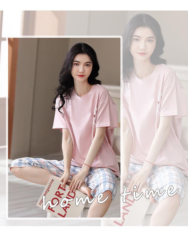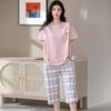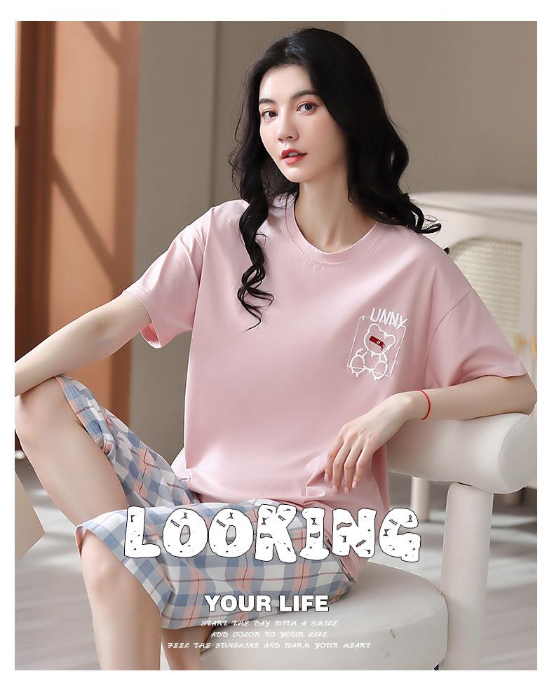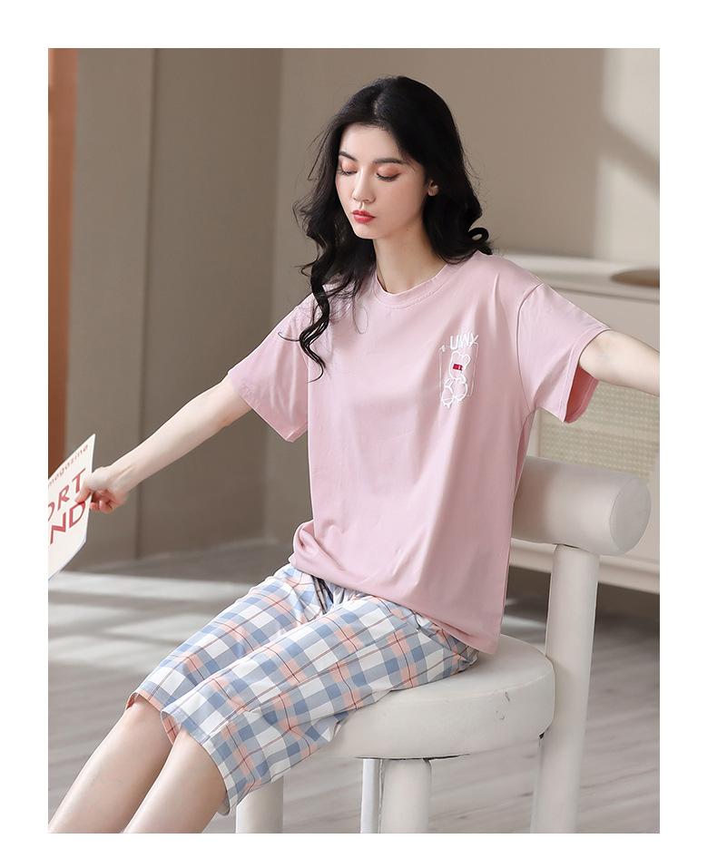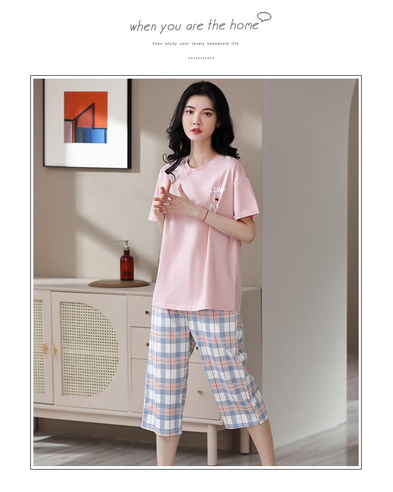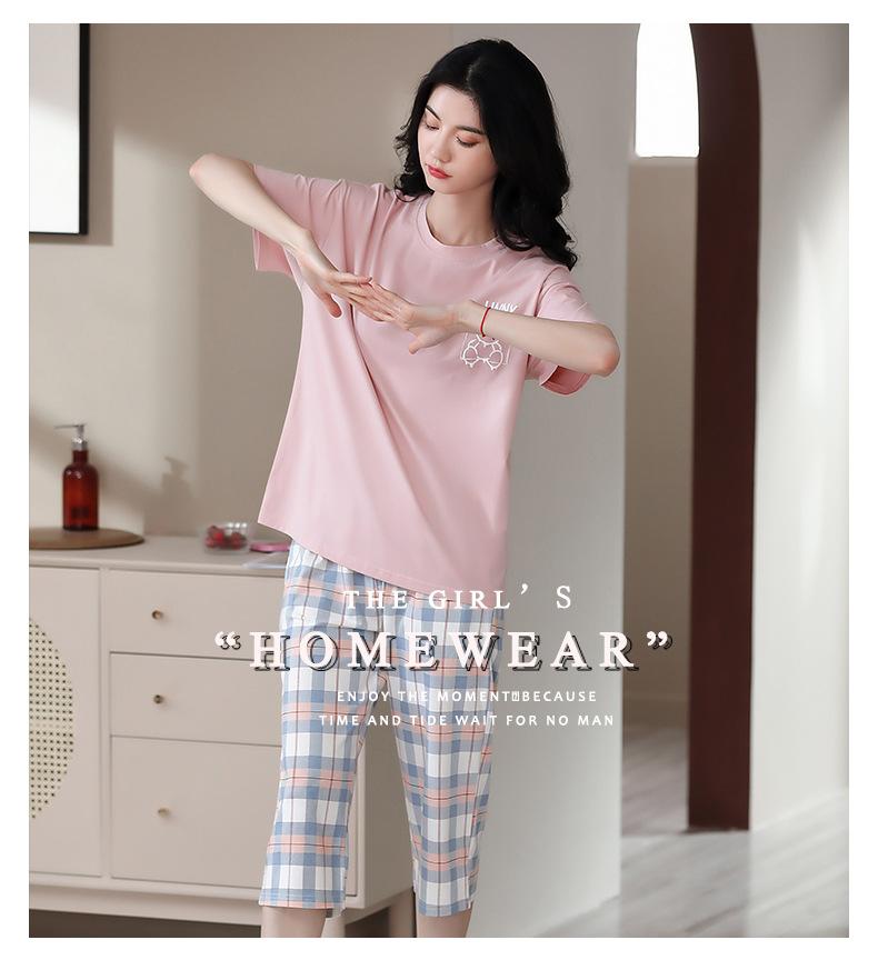 Primavera e verão algodão pijamas mulheres de manga curta calça cropped casual outerwear home wear doce bonito cartoon terno de verão