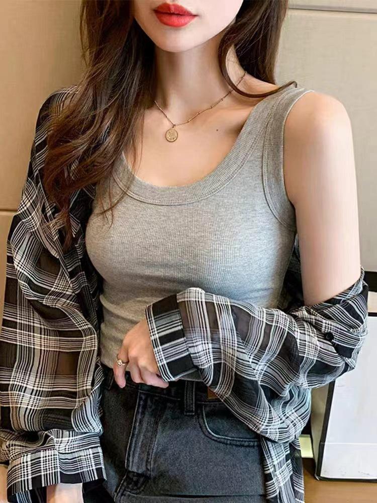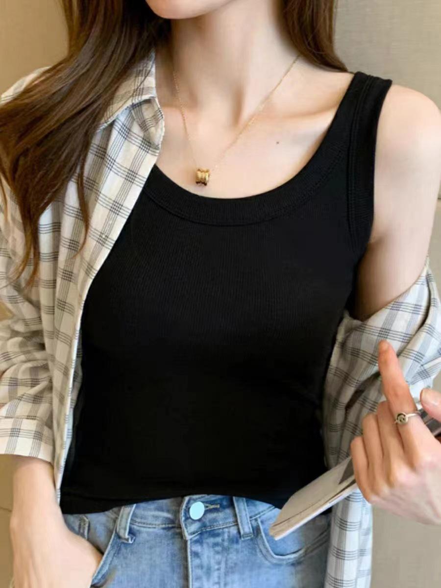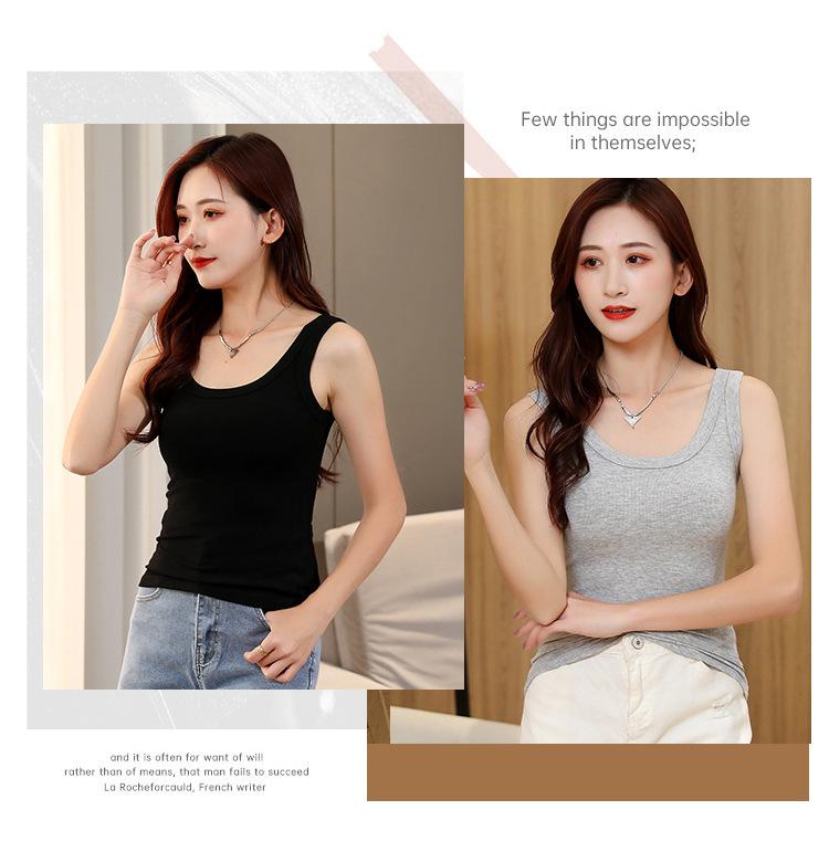 Camisola feminina Colete interno feminino Primavera e verão 2024 Nova camisa de base slim fit Roupa externa feminina Sem mangas All-match Algodão