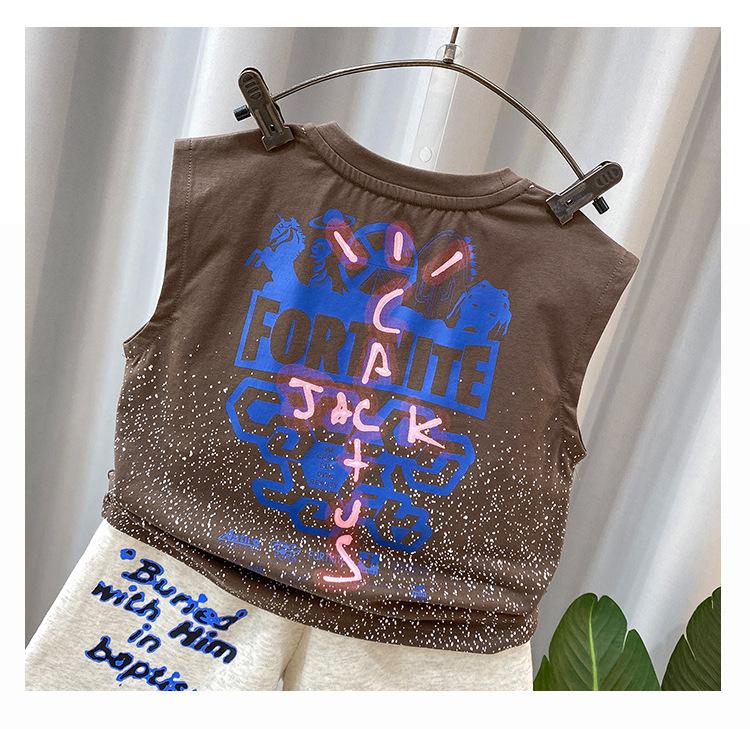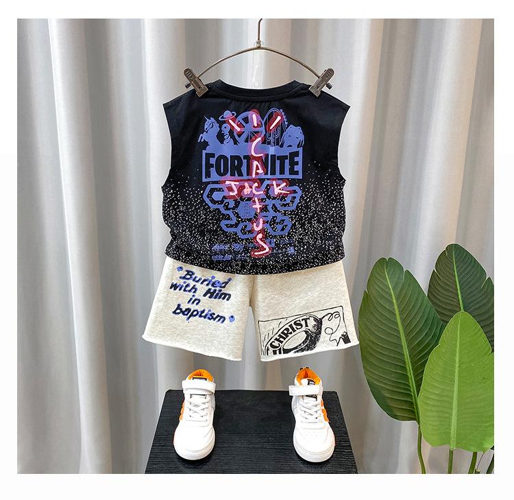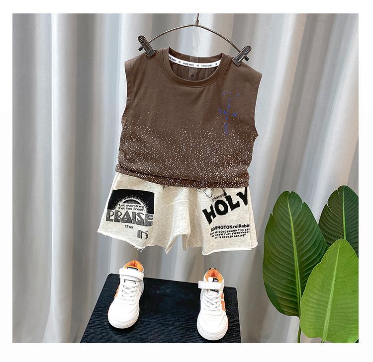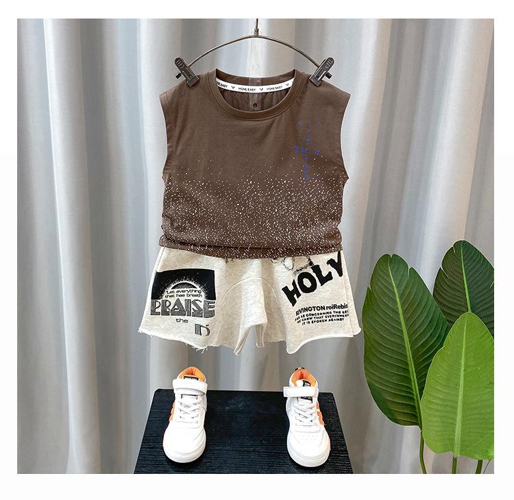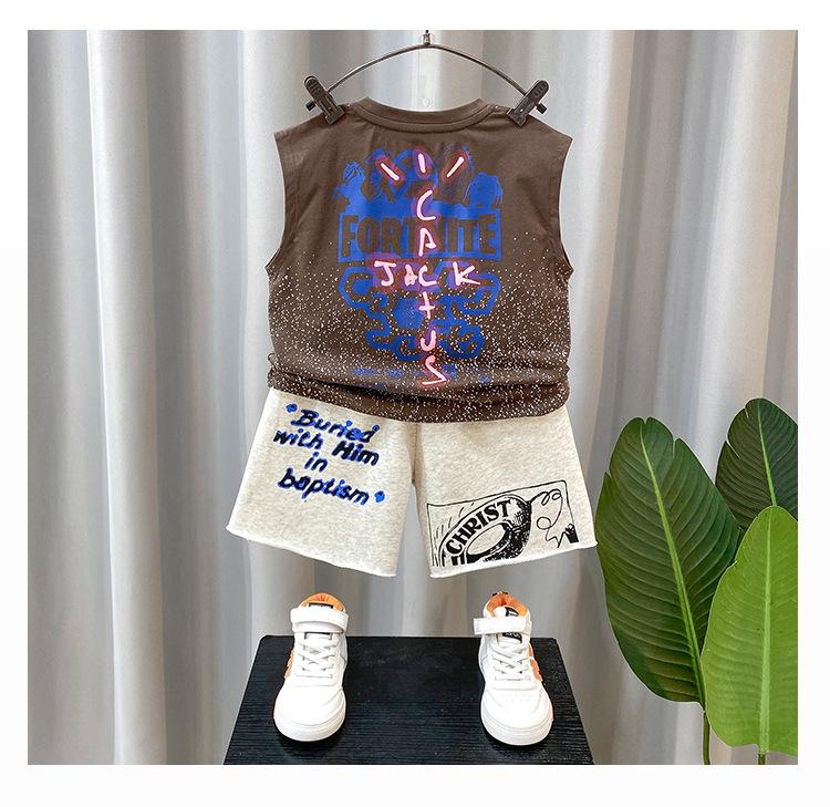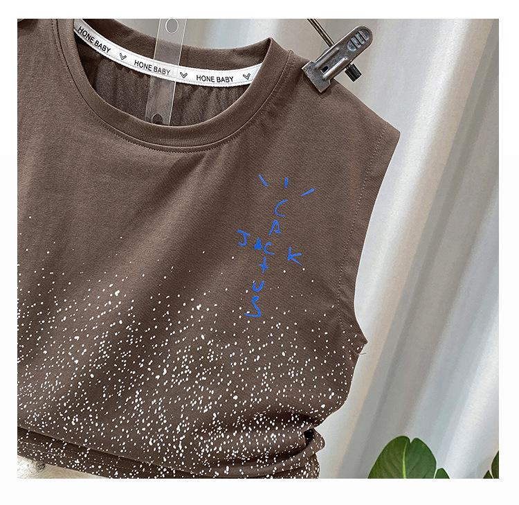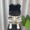 Conjunto Infantil Sem Mangas Moda Bebê Roupa Fina 2025 Verão Novo Estilo Colete Shorts Conjunto de Duas Peças Tendência