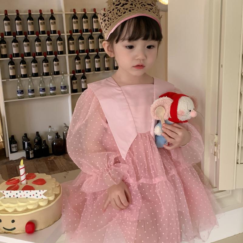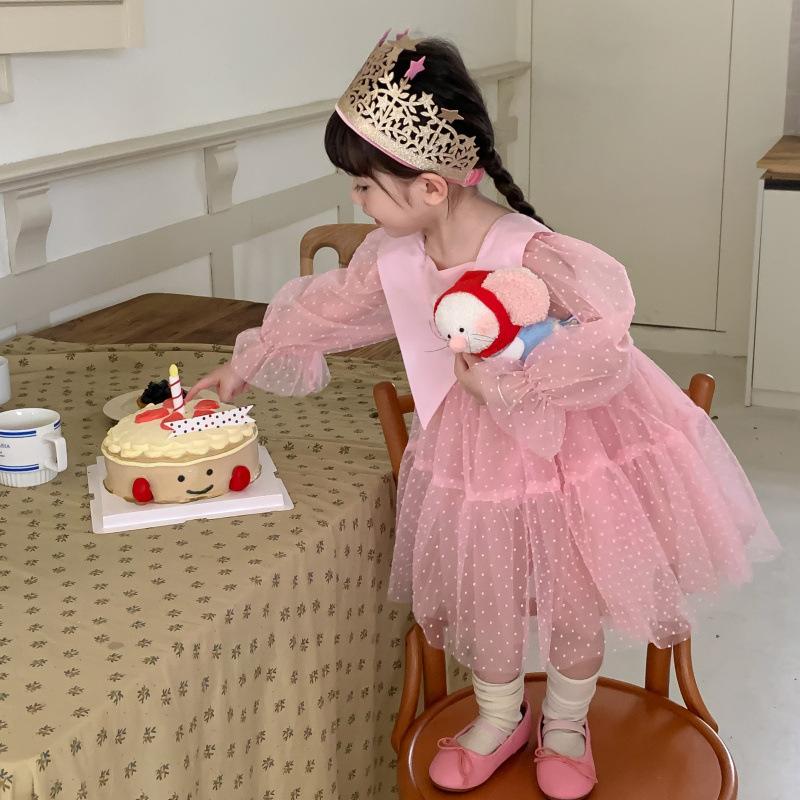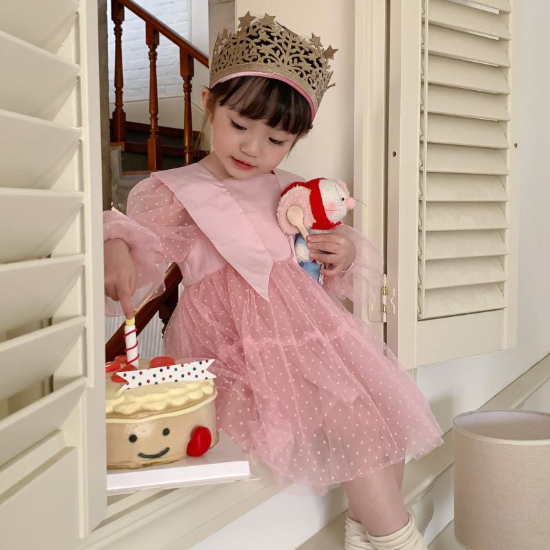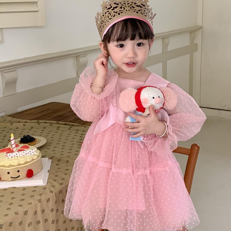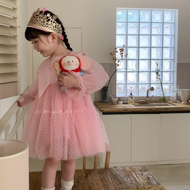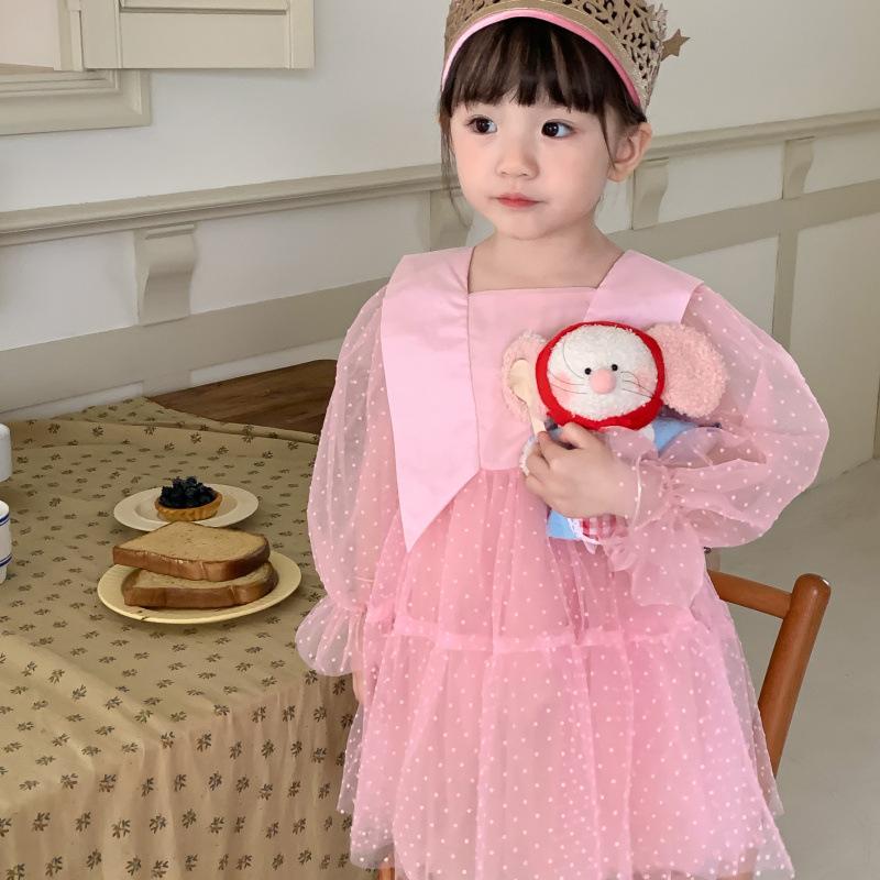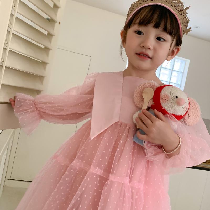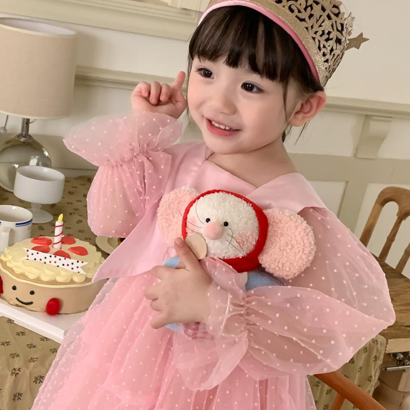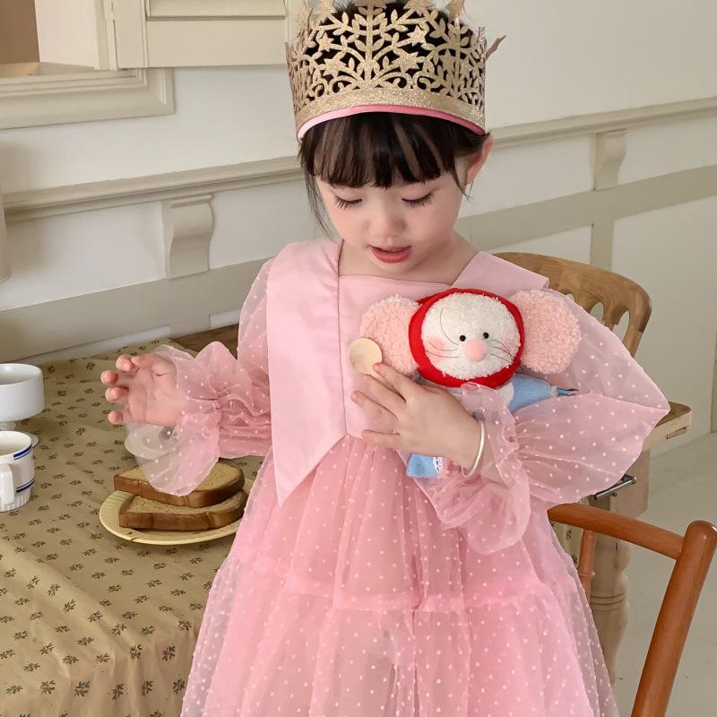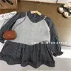 Vestido das meninas primavera e outono novo estilo ocidental vestido de princesa moda infantil estilo coreano vestido de malha das meninas vestido de princesa