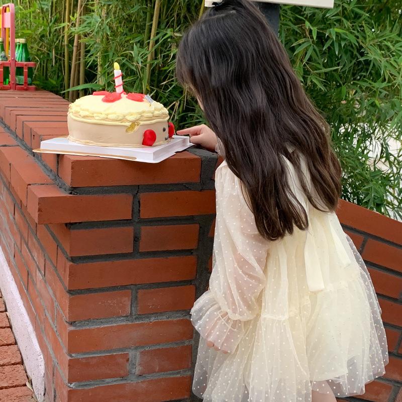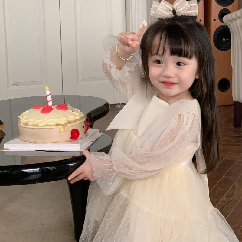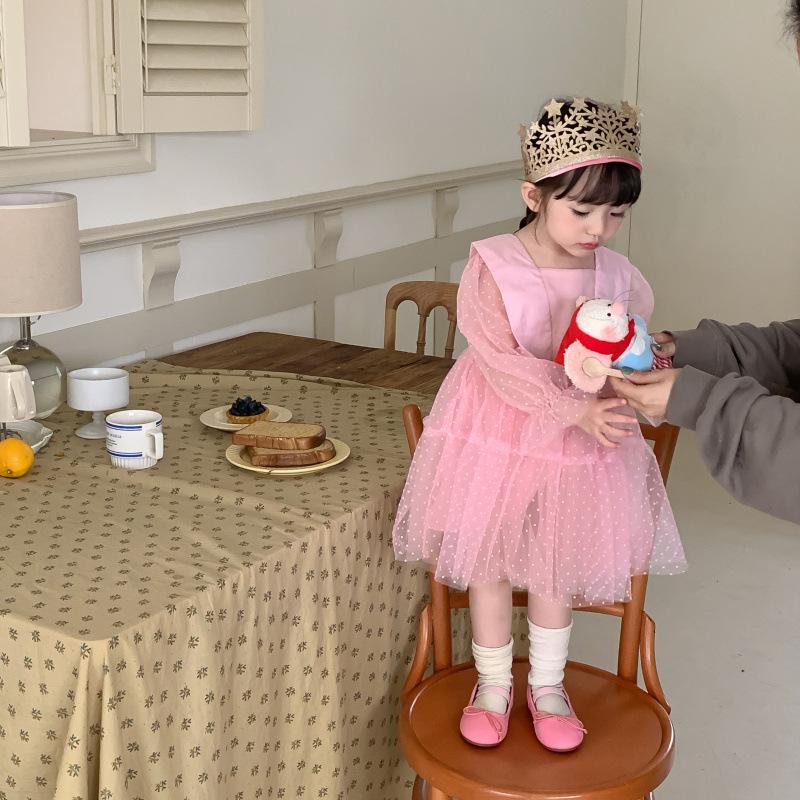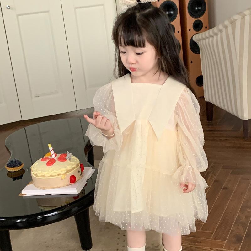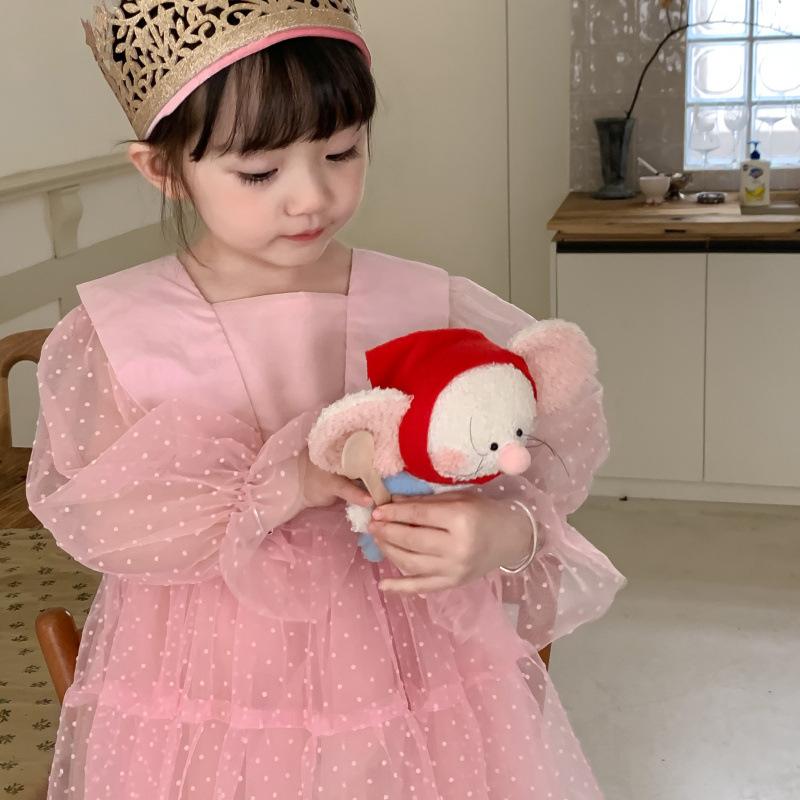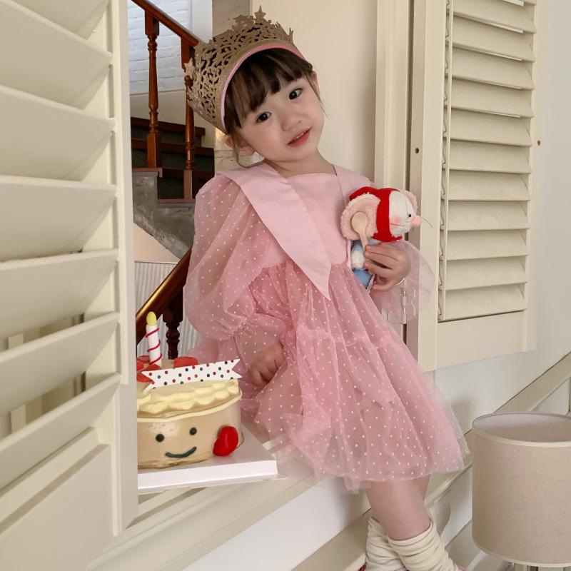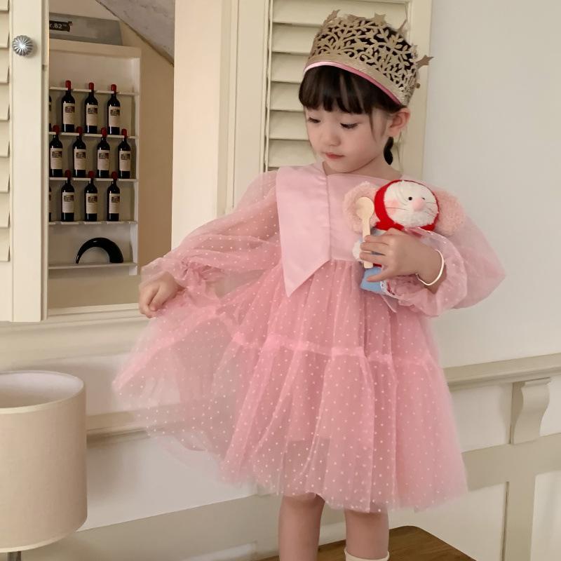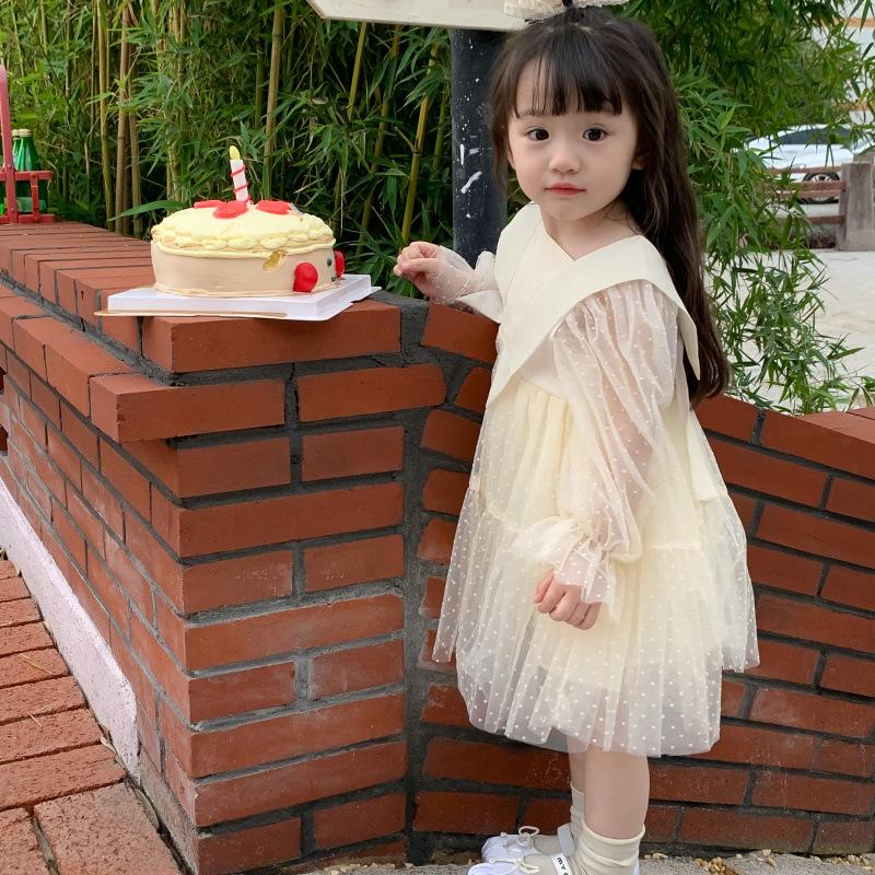 Vestido das meninas primavera e outono novo estilo ocidental vestido de princesa moda infantil estilo coreano vestido de malha das meninas vestido de princesa
