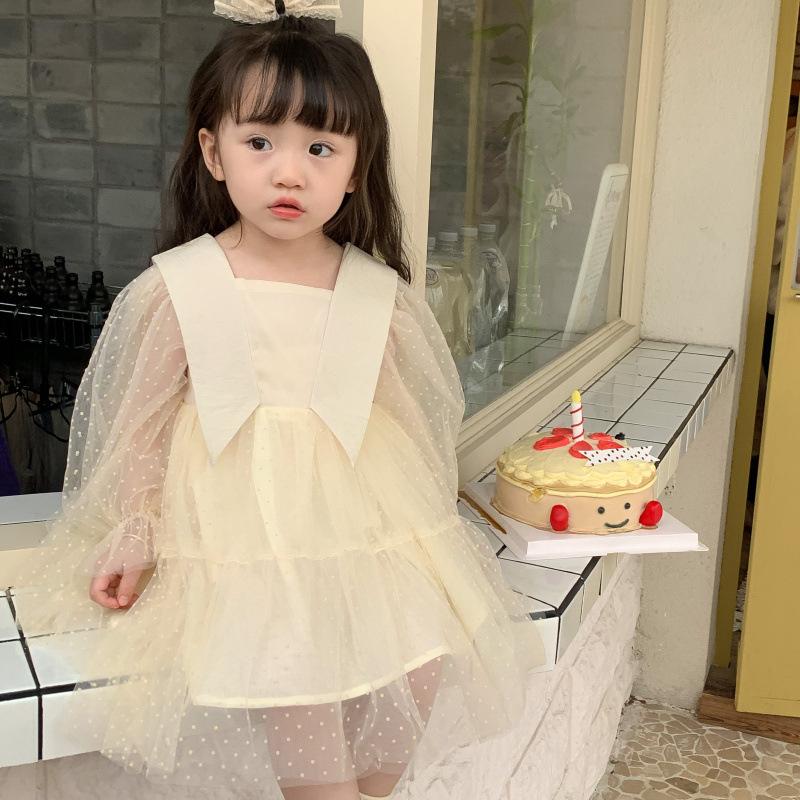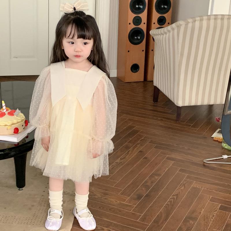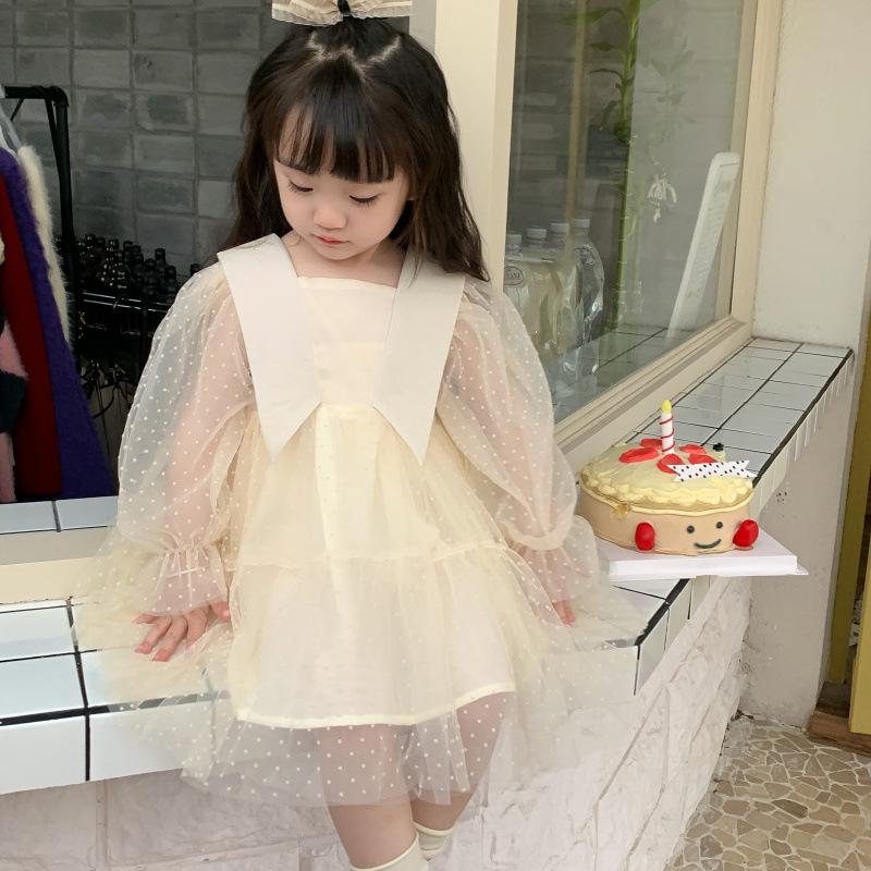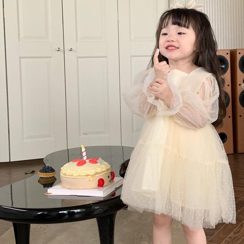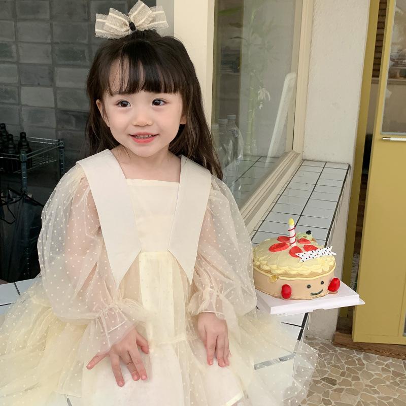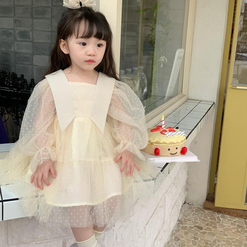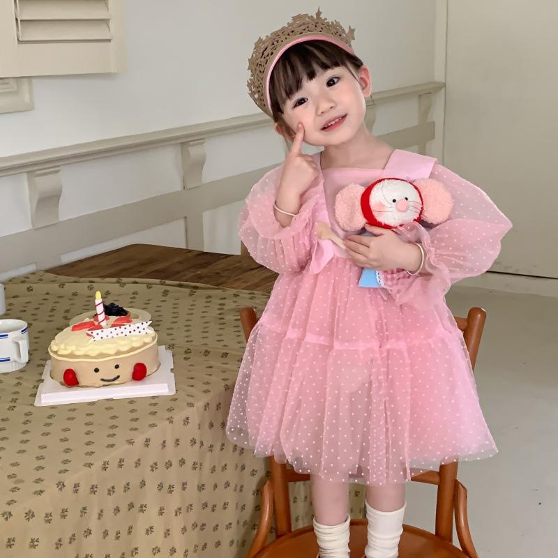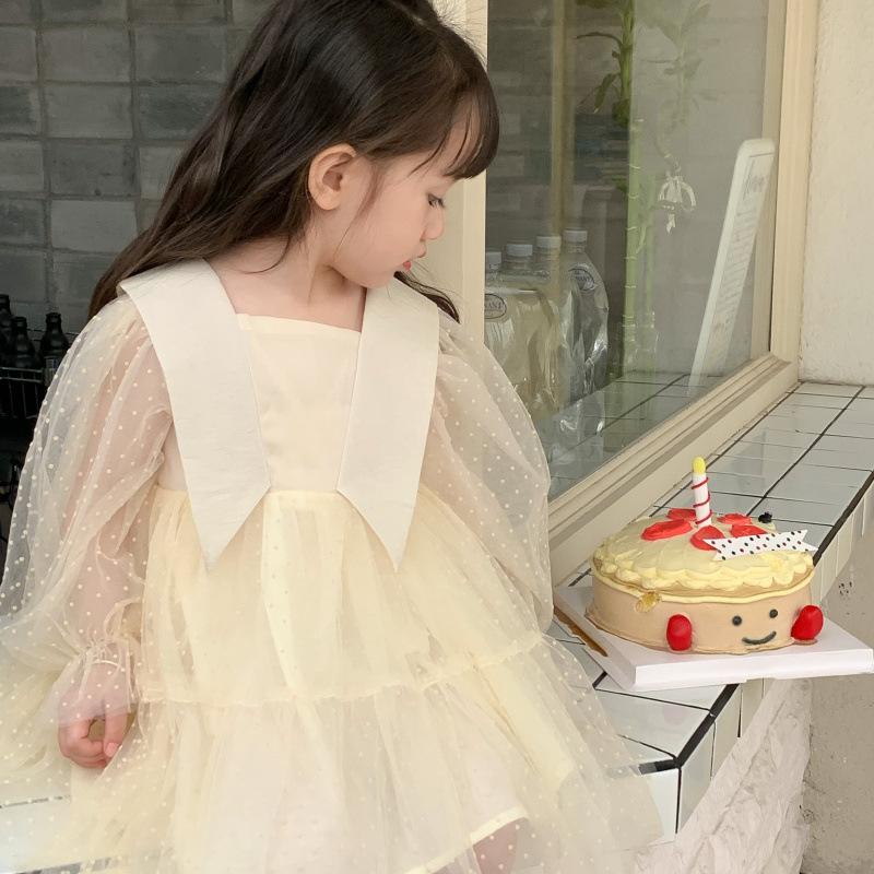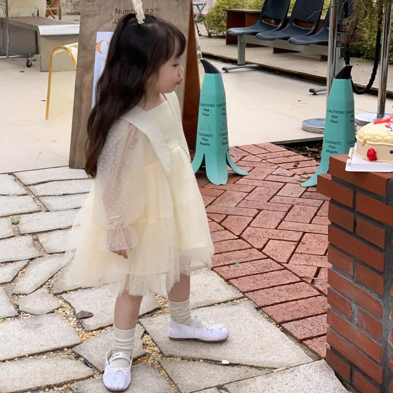 Vestido das meninas primavera e outono novo estilo ocidental vestido de princesa moda infantil estilo coreano vestido de malha das meninas vestido de princesa