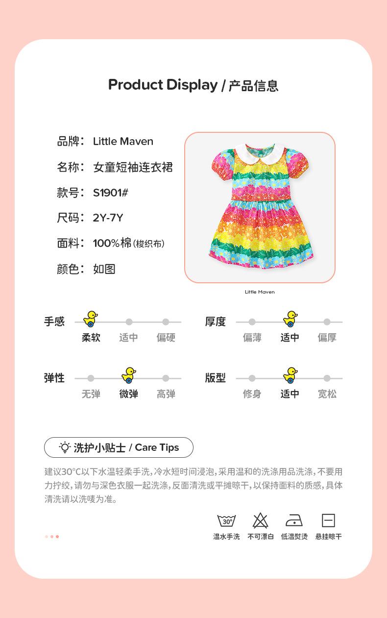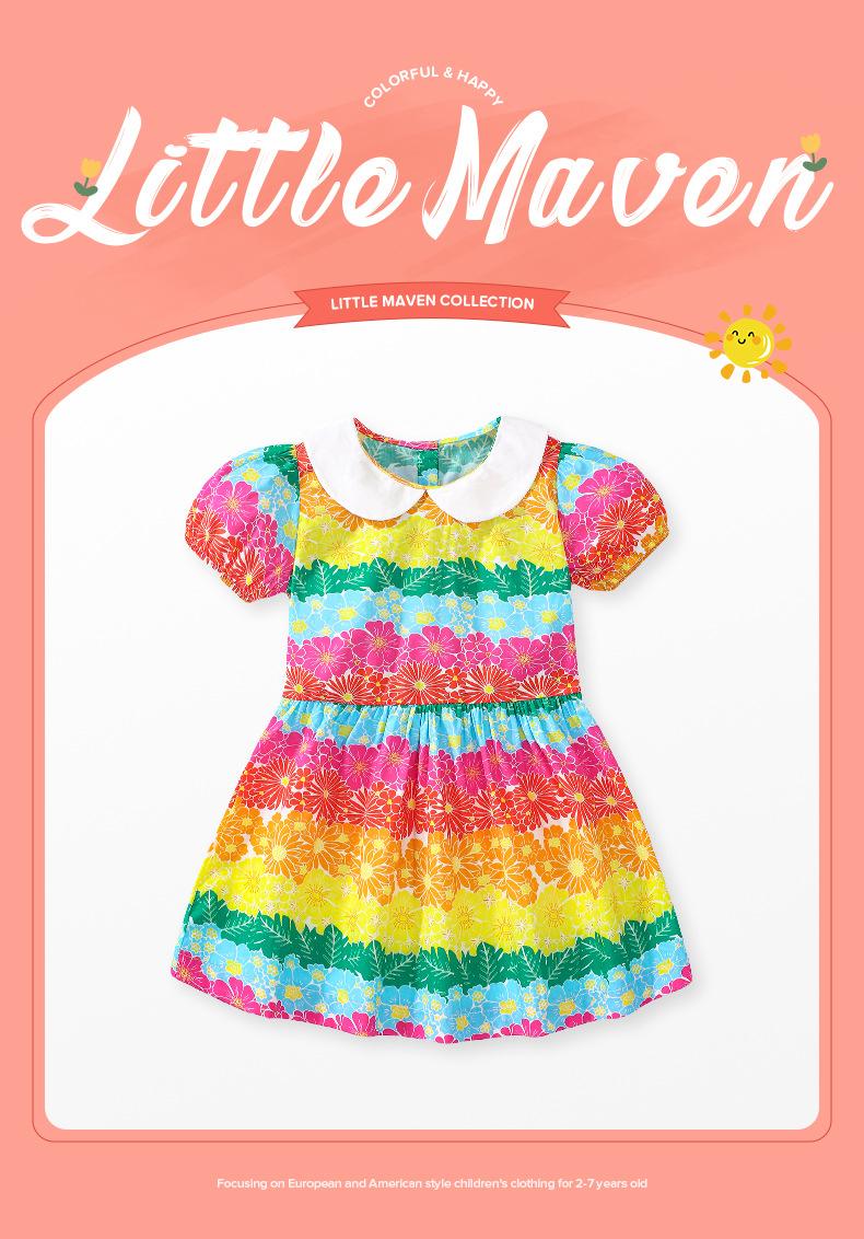 Little maven2024 Vestido de princesa infantil de algodão europeu e americano vestido de verão de manga curta para meninas vestido infantil transfronteiriço