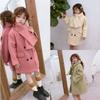 Casaco Longo de Lã para Meninas Outwear 26 Outono e Inverno Novo Estilo Comércio Exterior Roupas Infantis Atacado para Idades 3-9 com Cachecol Grátis