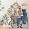Roupas infantis terno de roupas de outono para meninos 2023 Estilo ocidental roupas casuais infantis camisa de manga comprida para meninos de três peças terno moda