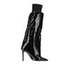 Botas femininas de passarela da estação europeia 2023 Novas botas altas escuras de salto de metal pontudo, botas de salto alto para meninas quentes para mulheres