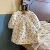 Vestido de inverno para meninas, estilo bebê, infantil, personalizado, moderno, estilo coreano, grosso, algodão, floral, gola quadrada, vestido de princesa