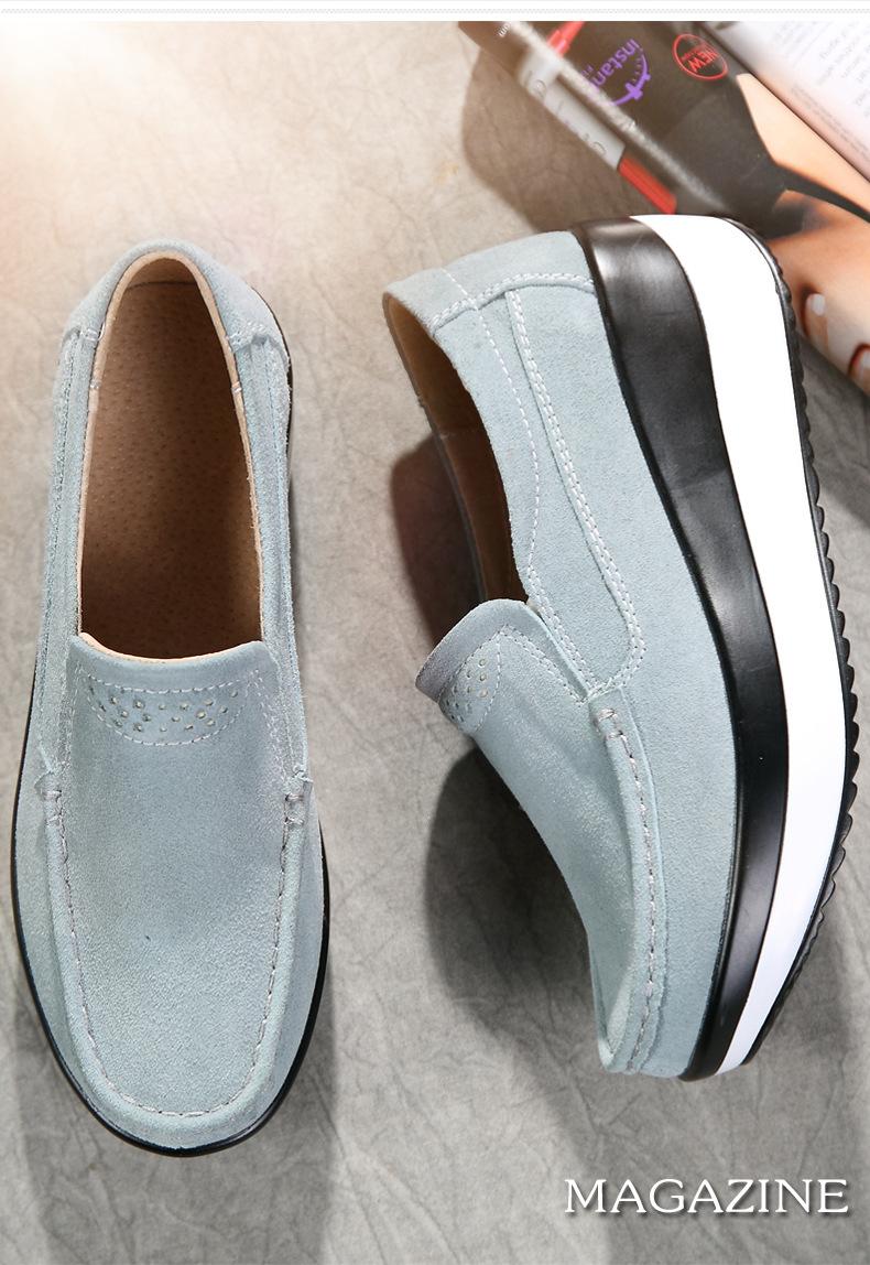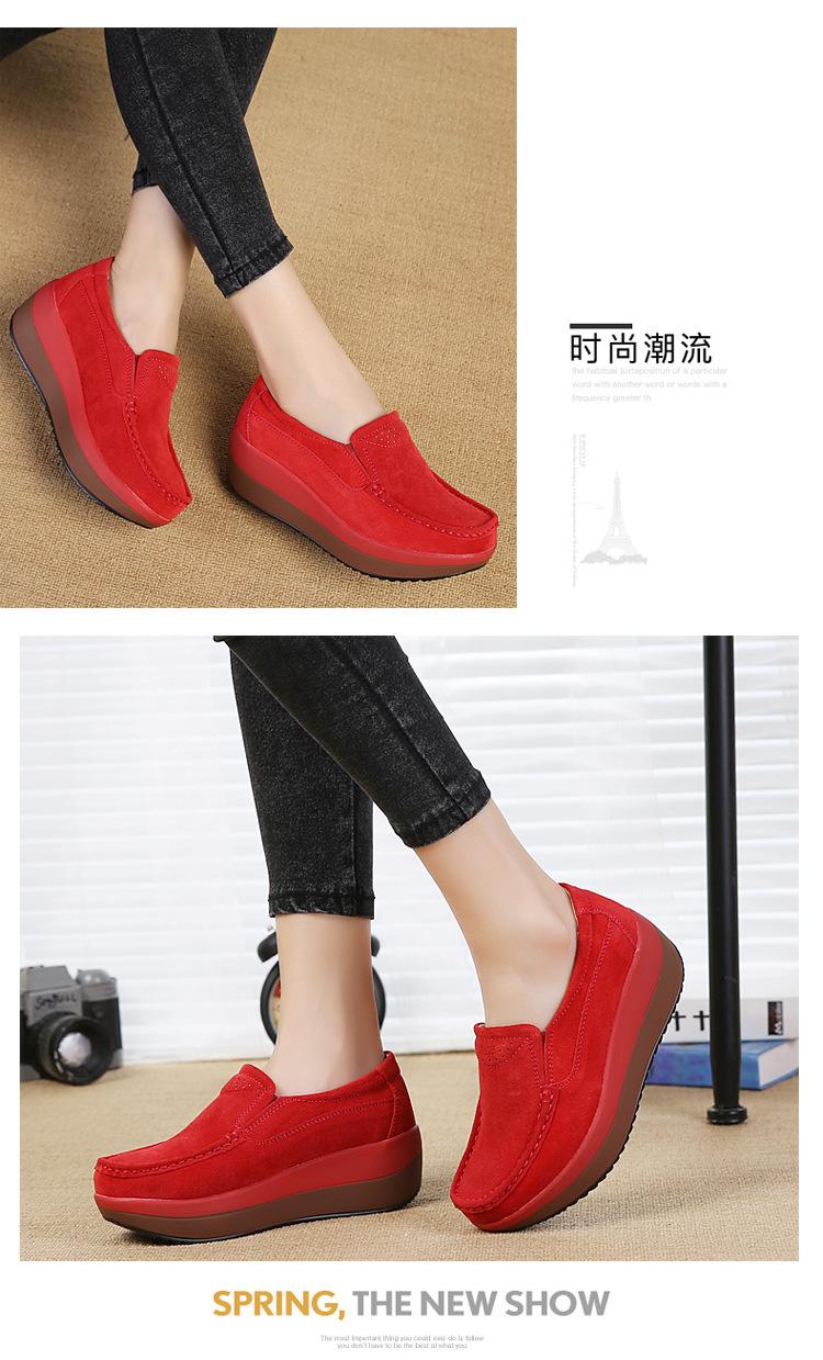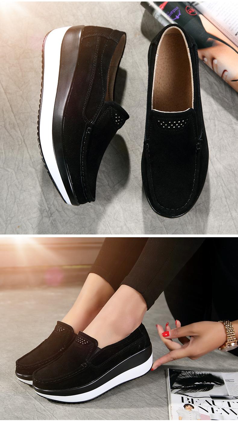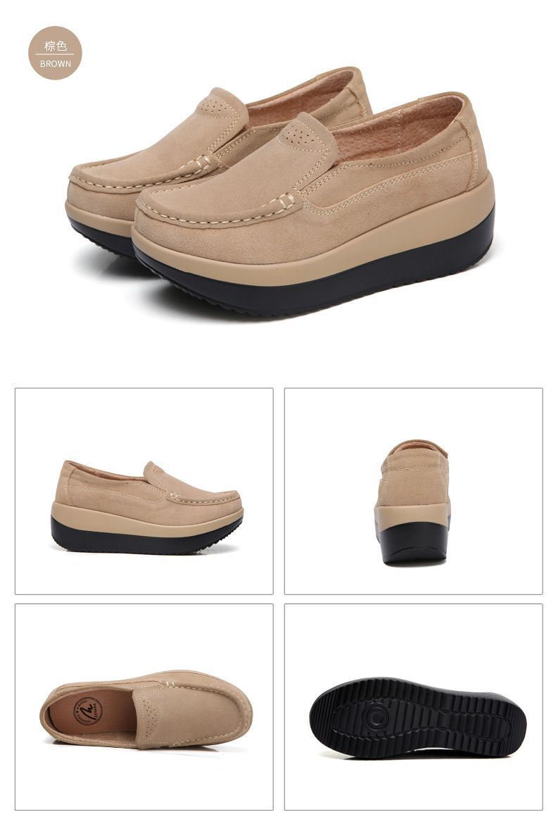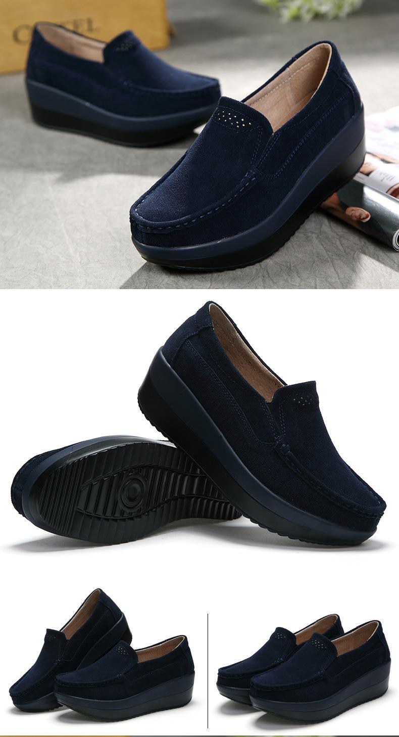 Primavera e Outono Sapatos Femininos Plataforma Borla Sola Grossa Sapatos Cunha para Mães Sapatos Baixos de Couro Sapatos de Balanço Beans Sapatos Femininos Tamanho Grande 42