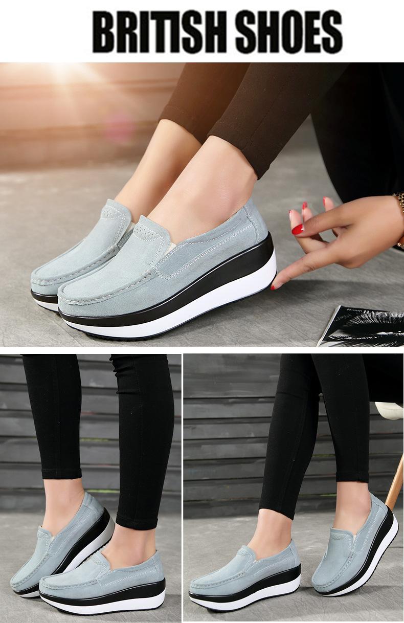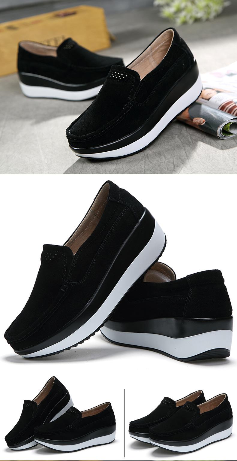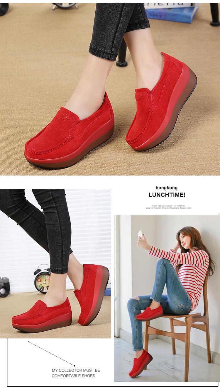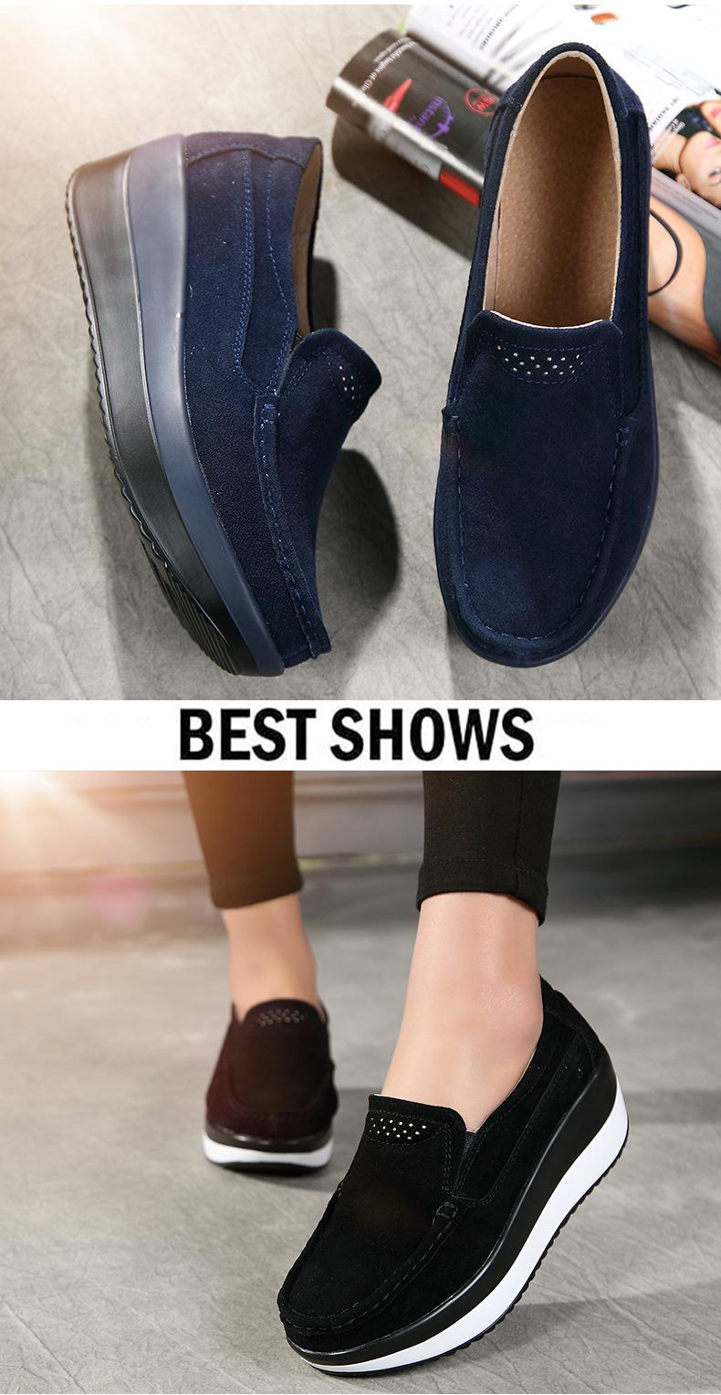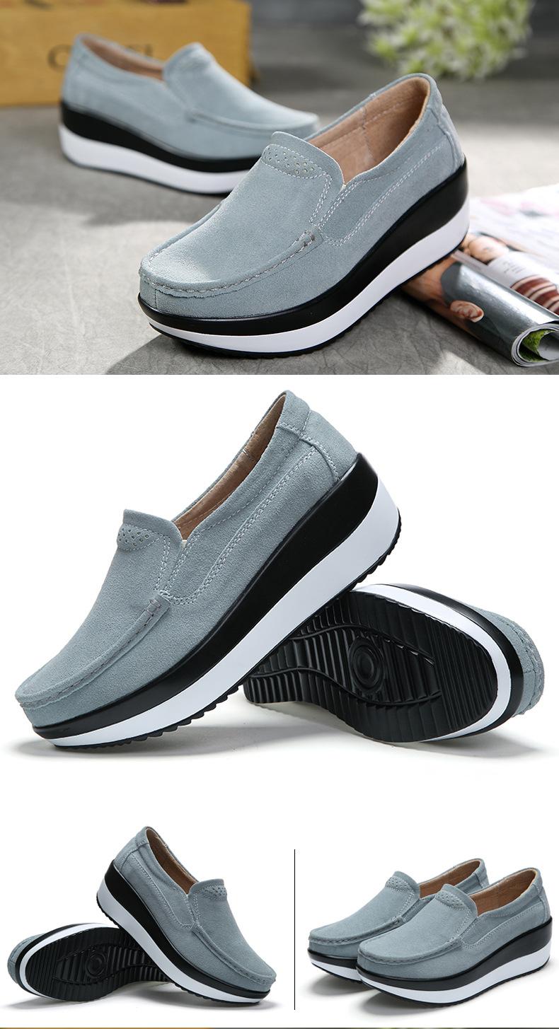 Primavera e Outono Sapatos Femininos Plataforma Borla Sola Grossa Sapatos Cunha para Mães Sapatos Baixos de Couro Sapatos de Balanço Beans Sapatos Femininos Tamanho Grande 42