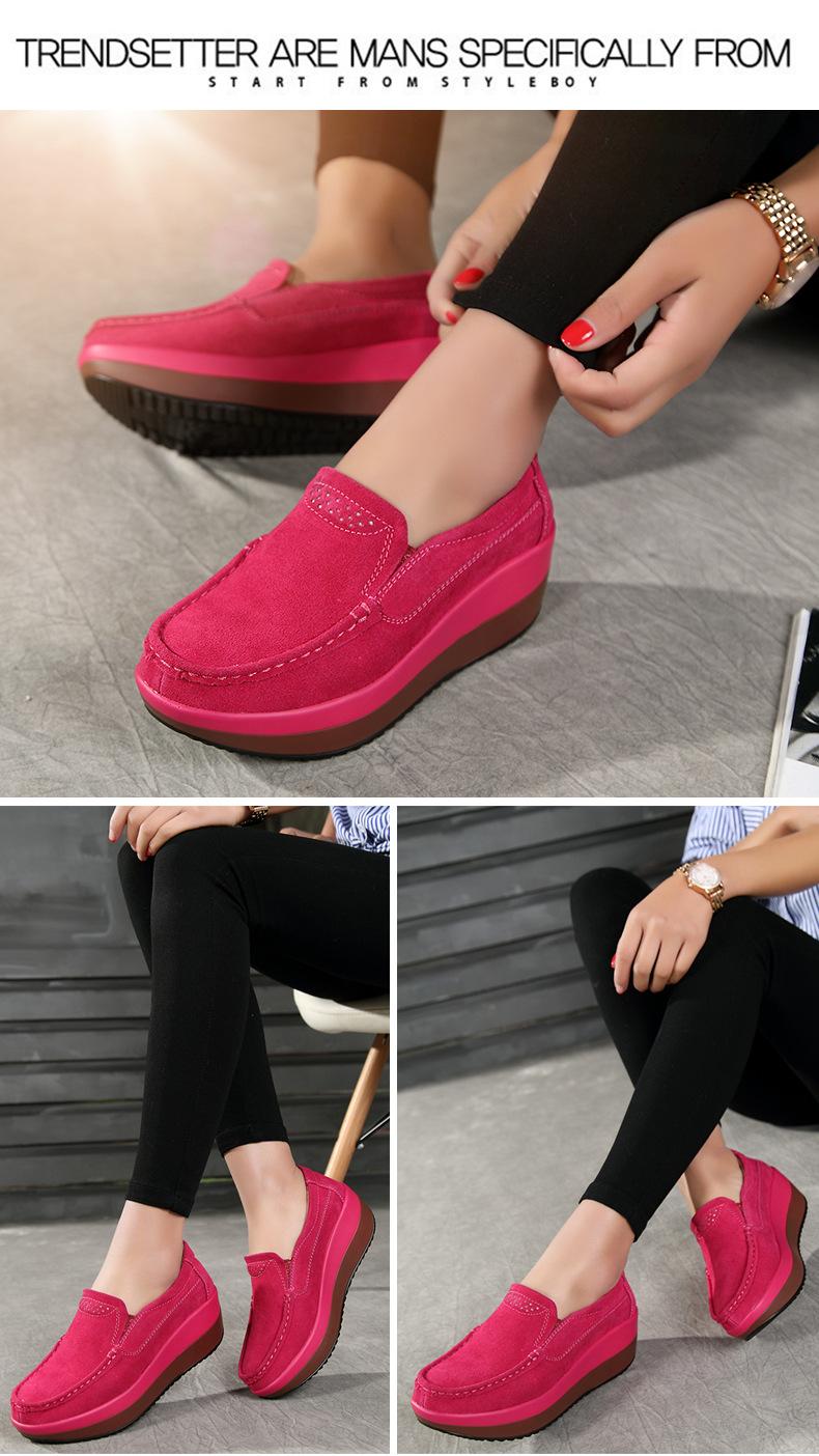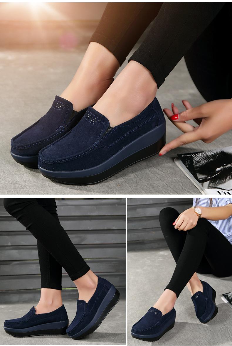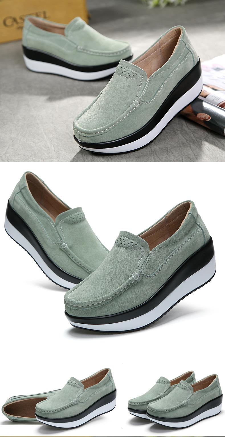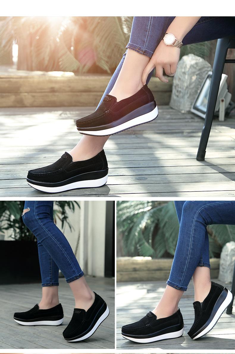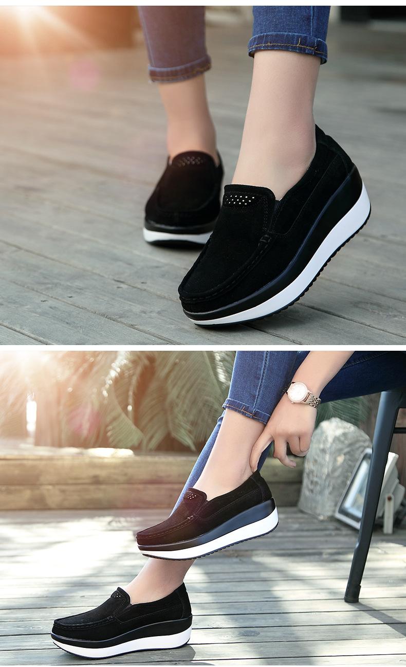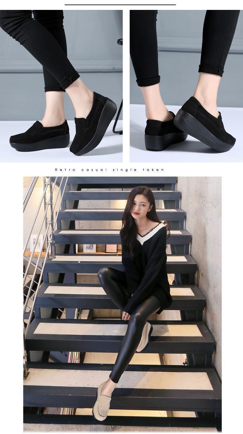 Primavera e Outono Sapatos Femininos Plataforma Borla Sola Grossa Sapatos Cunha para Mães Sapatos Baixos de Couro Sapatos de Balanço Beans Sapatos Femininos Tamanho Grande 42