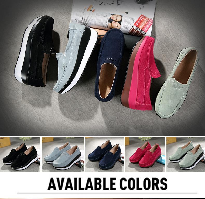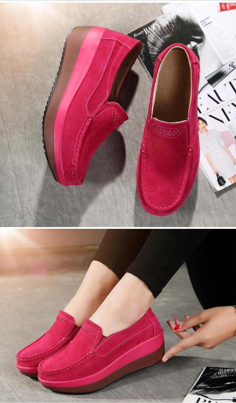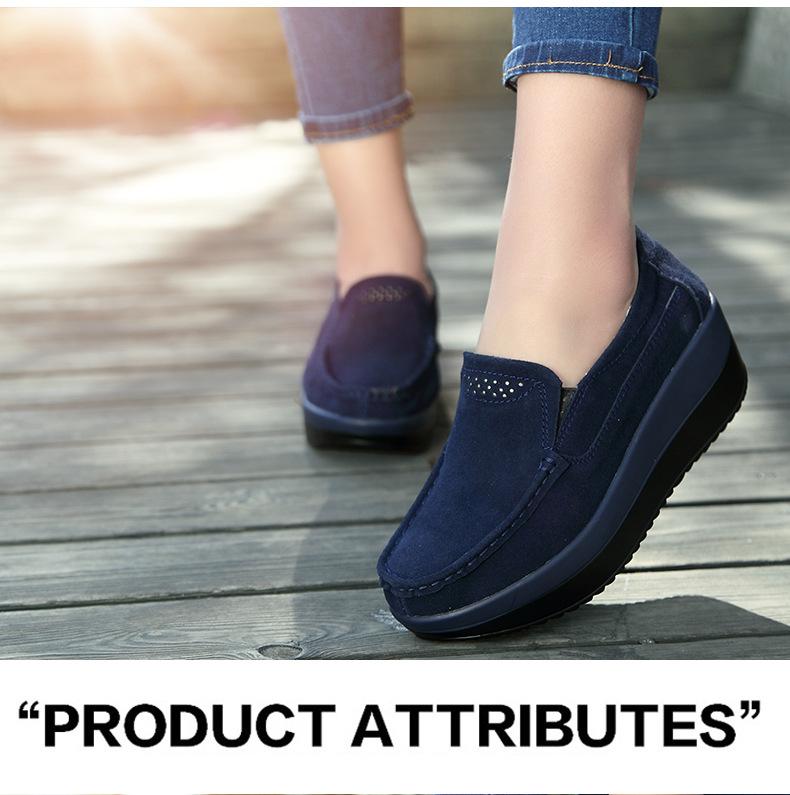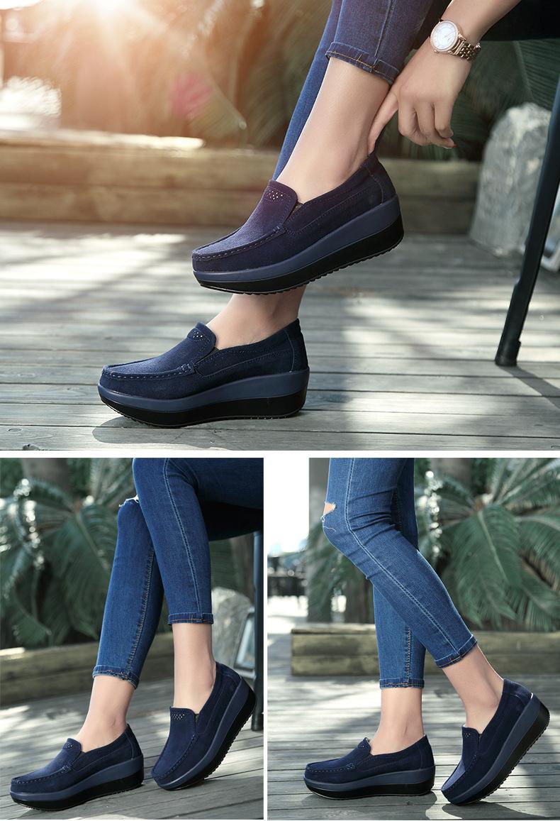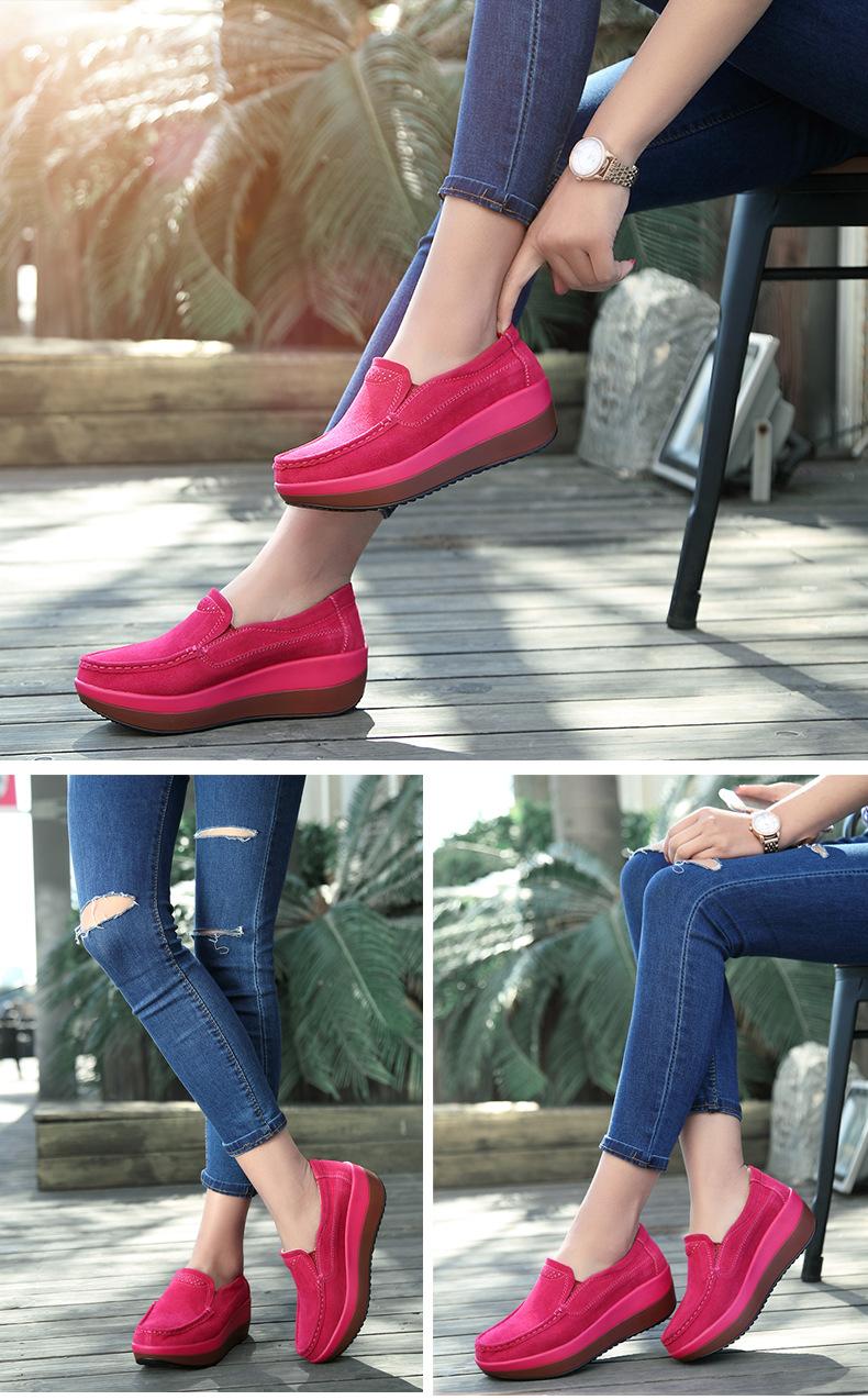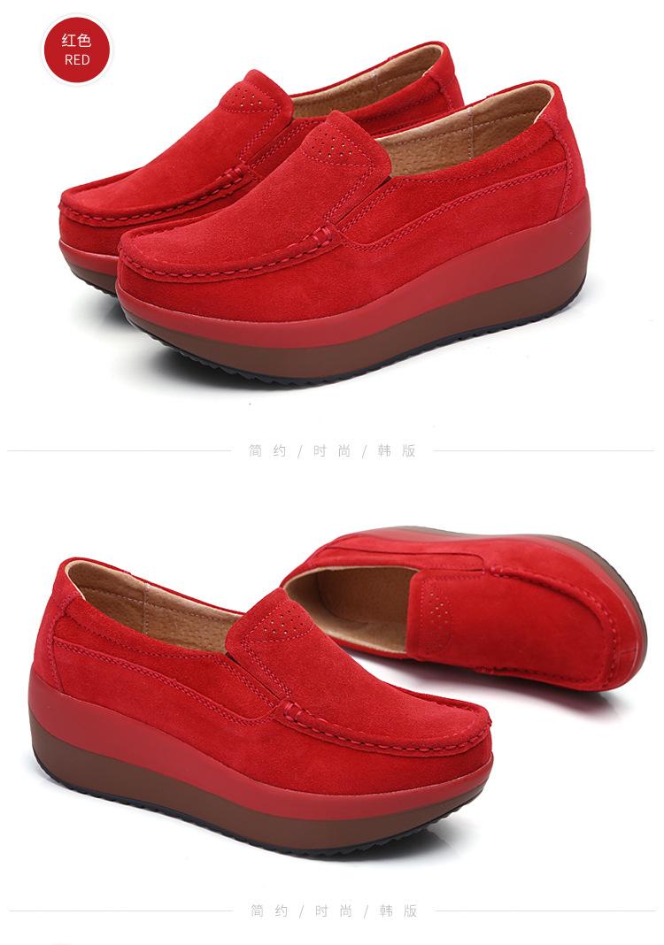 Primavera e Outono Sapatos Femininos Plataforma Borla Sola Grossa Sapatos Cunha para Mães Sapatos Baixos de Couro Sapatos de Balanço Beans Sapatos Femininos Tamanho Grande 42
