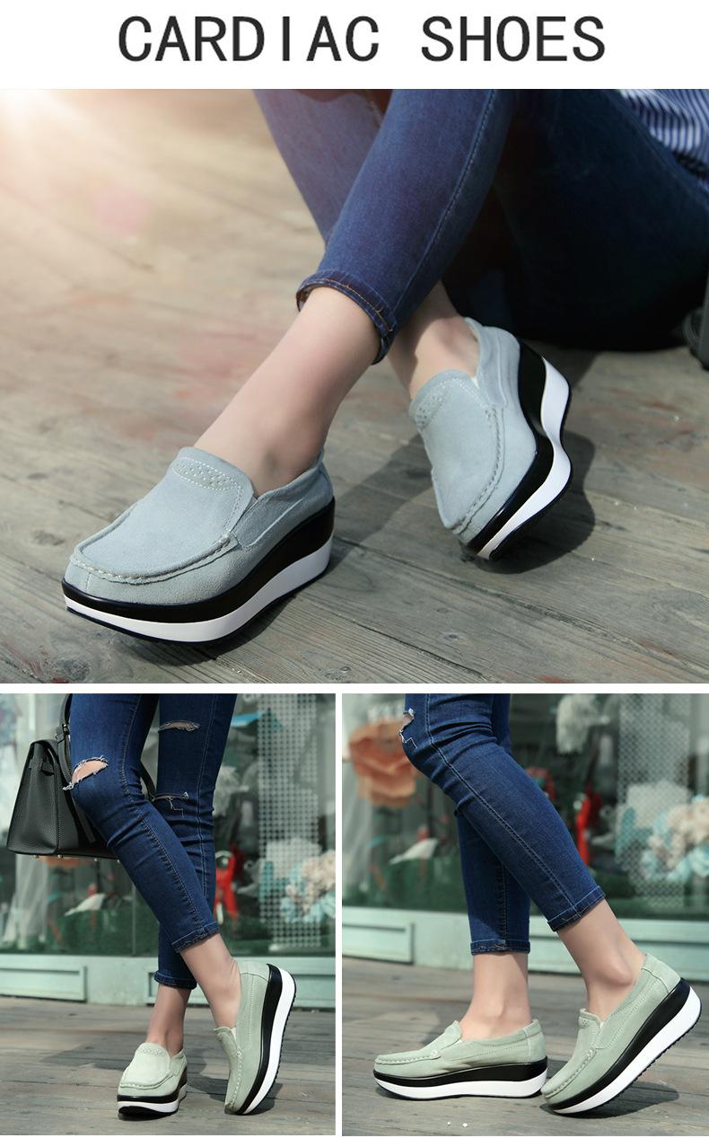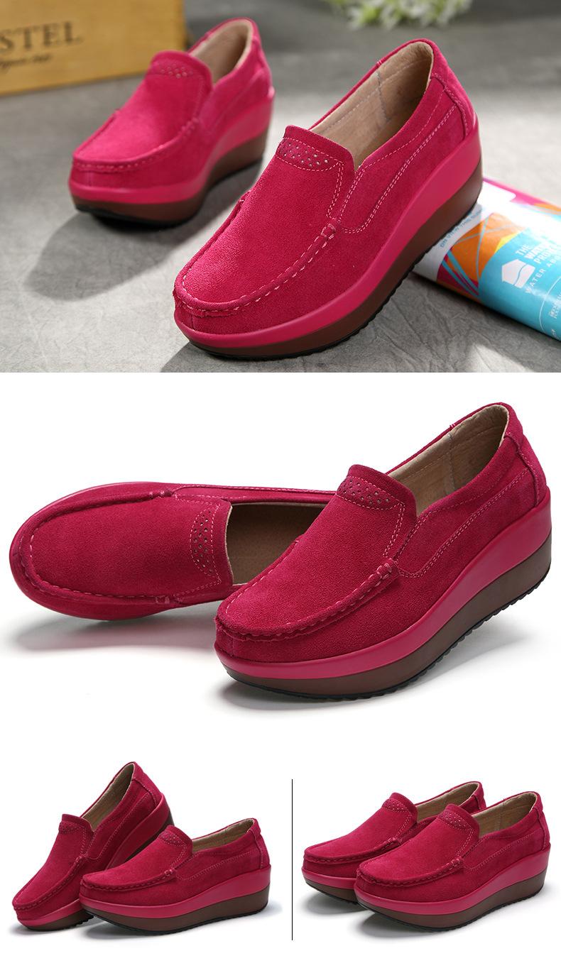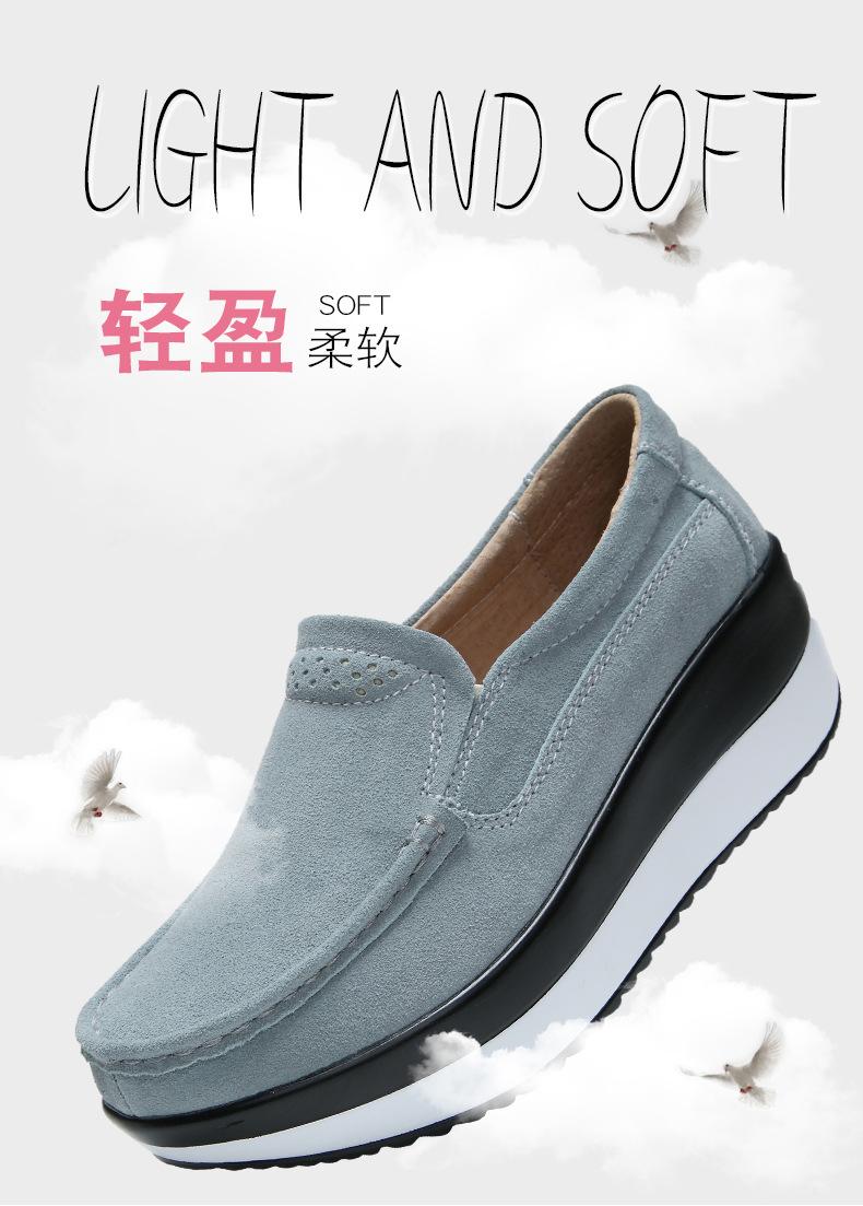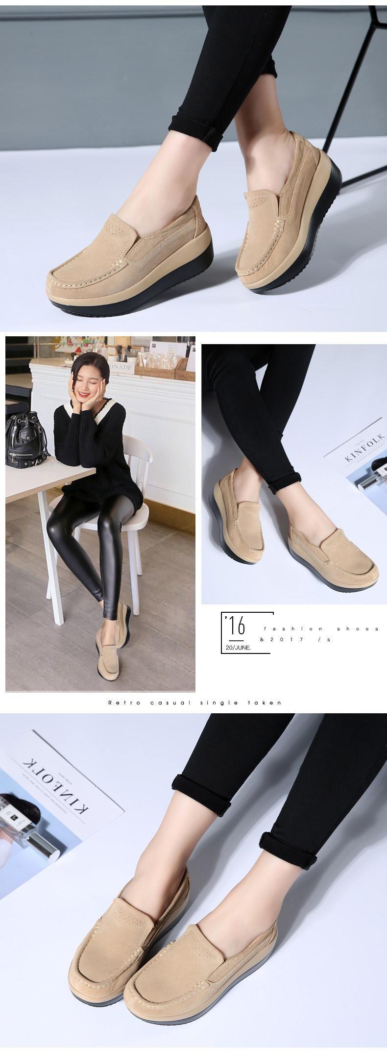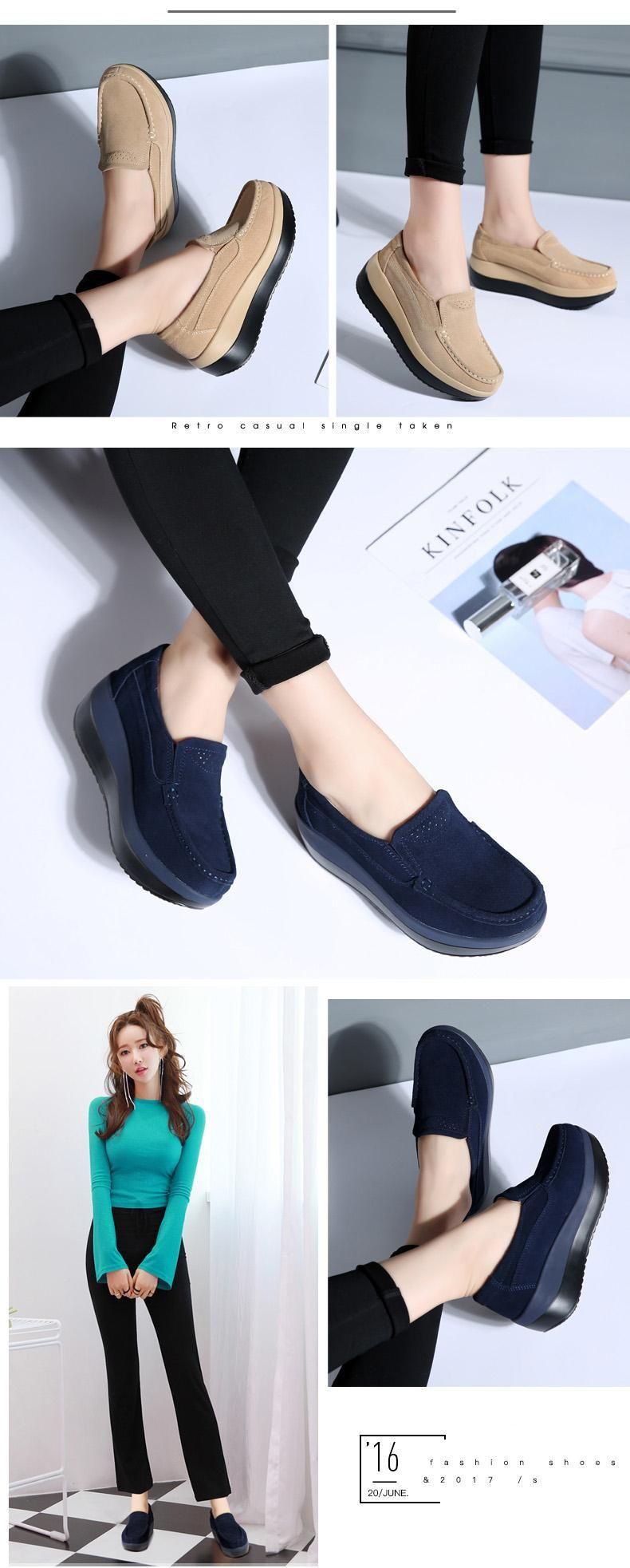 Primavera e Outono Sapatos Femininos Plataforma Borla Sola Grossa Sapatos Cunha para Mães Sapatos Baixos de Couro Sapatos de Balanço Beans Sapatos Femininos Tamanho Grande 42