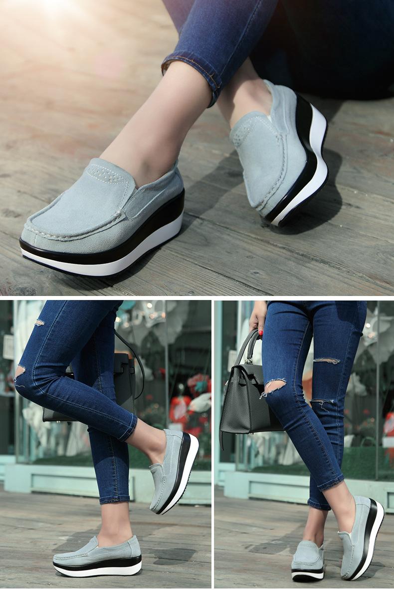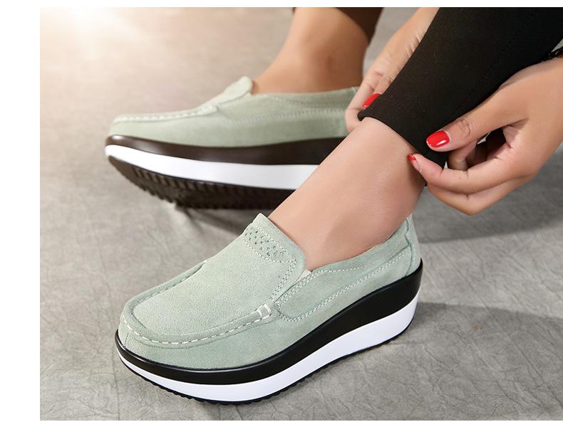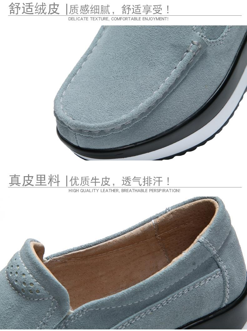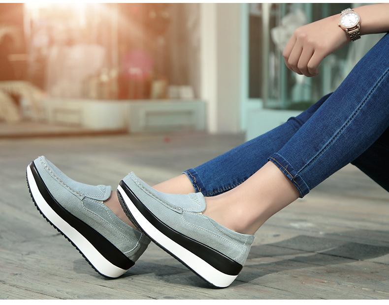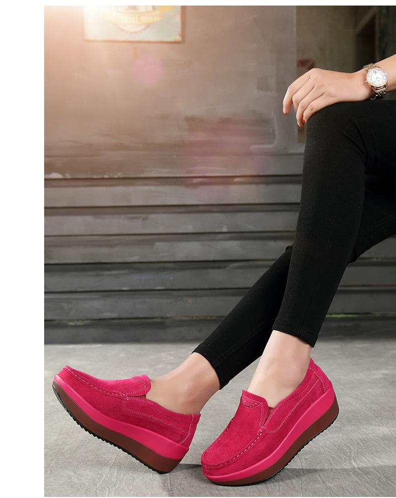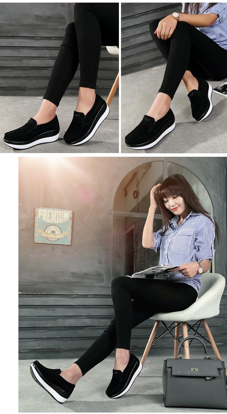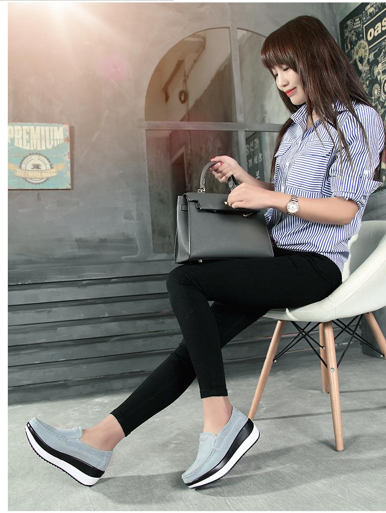Primavera e Outono Sapatos Femininos Plataforma Borla Sola Grossa Sapatos Cunha para Mães Sapatos Baixos de Couro Sapatos de Balanço Beans Sapatos Femininos Tamanho Grande 42