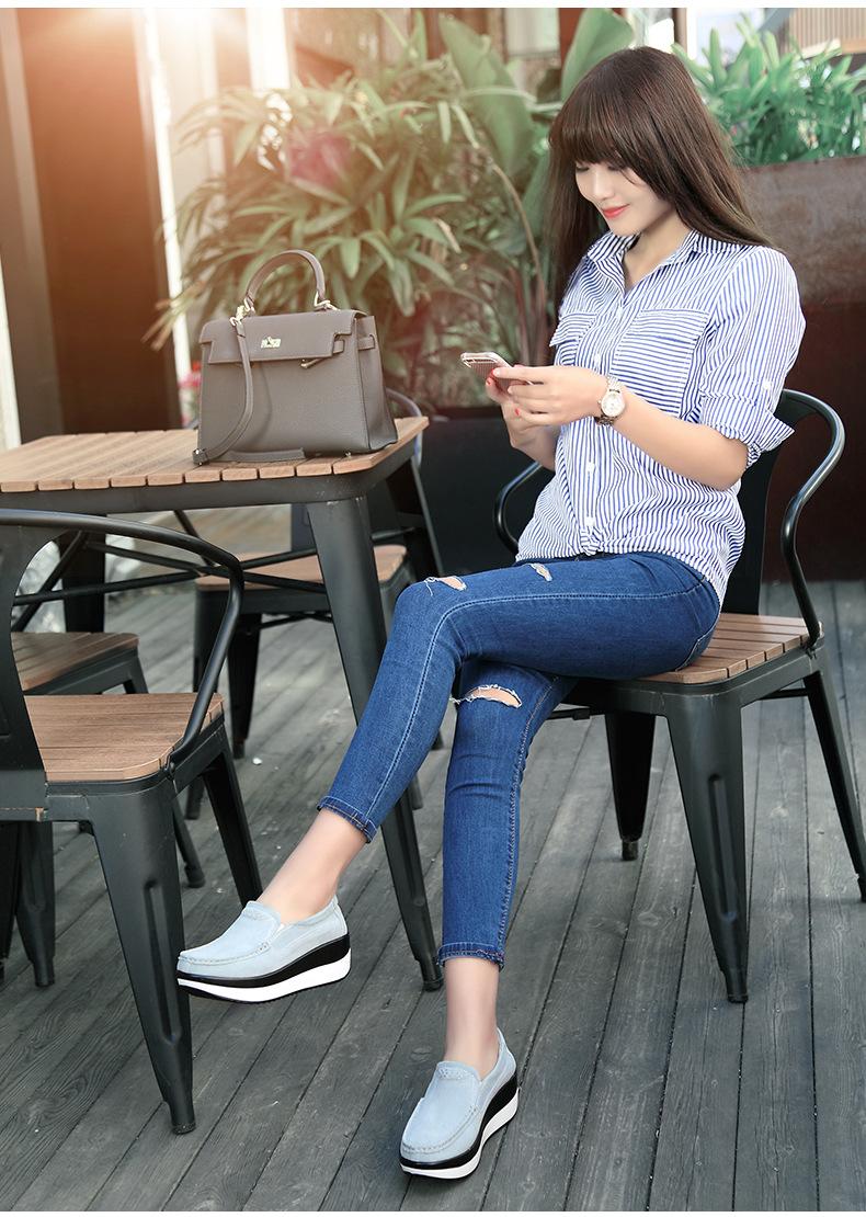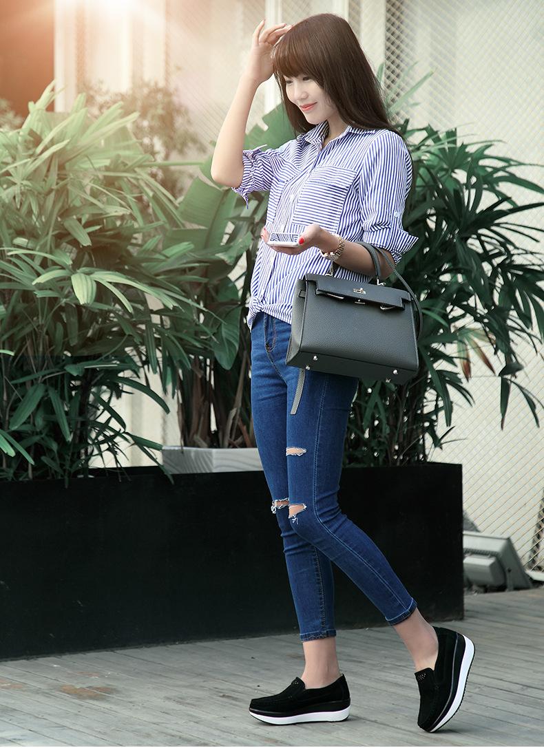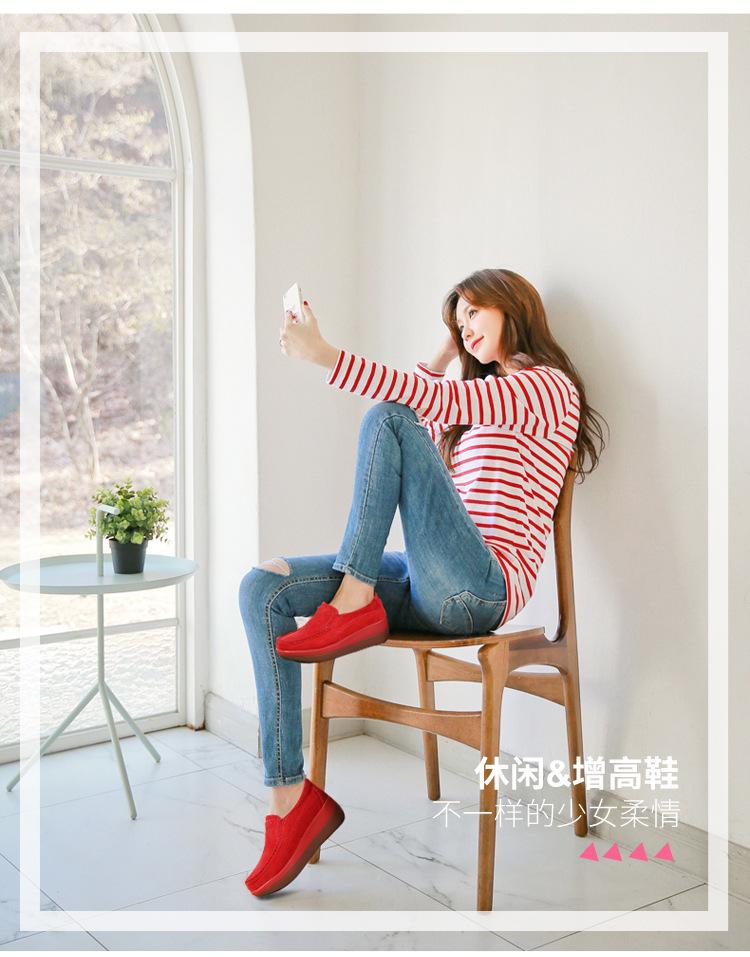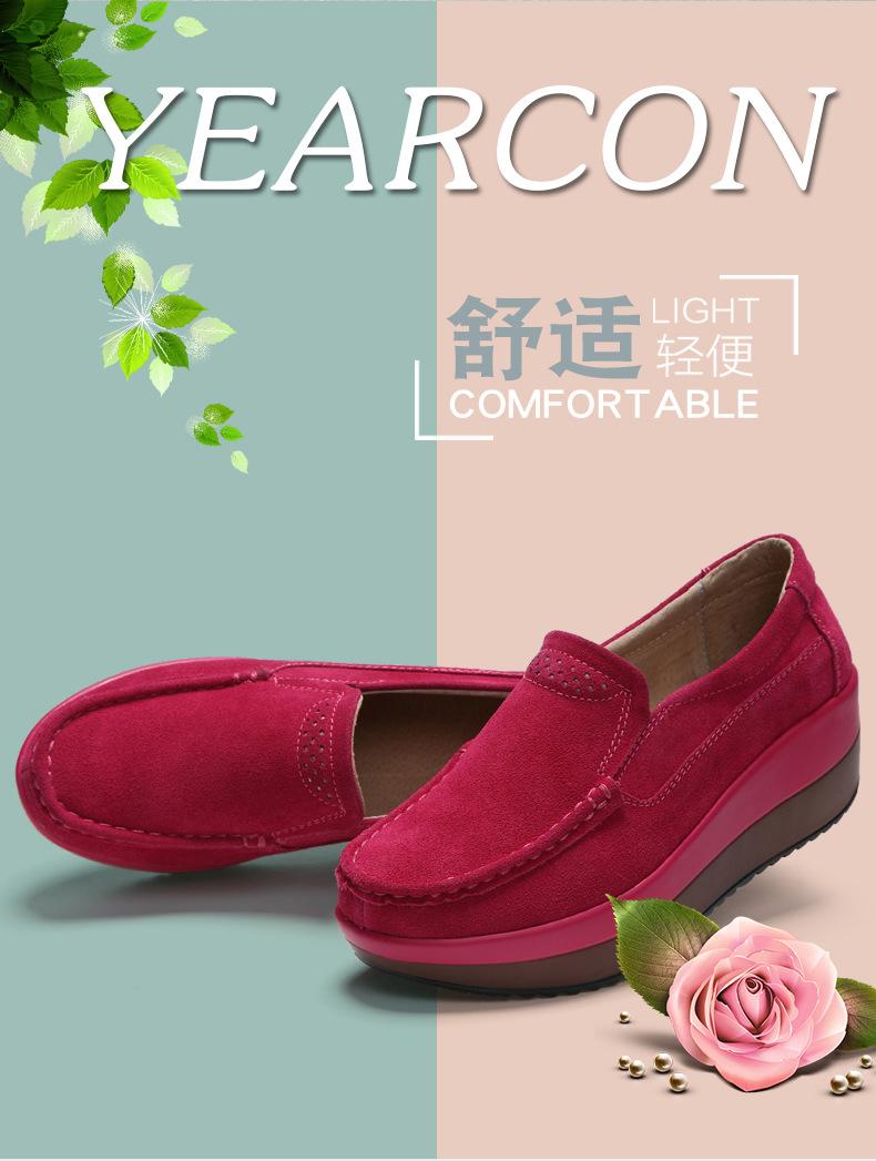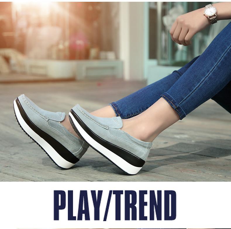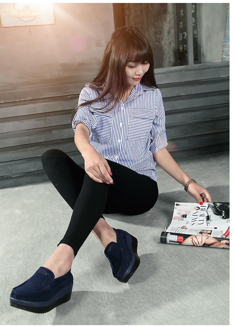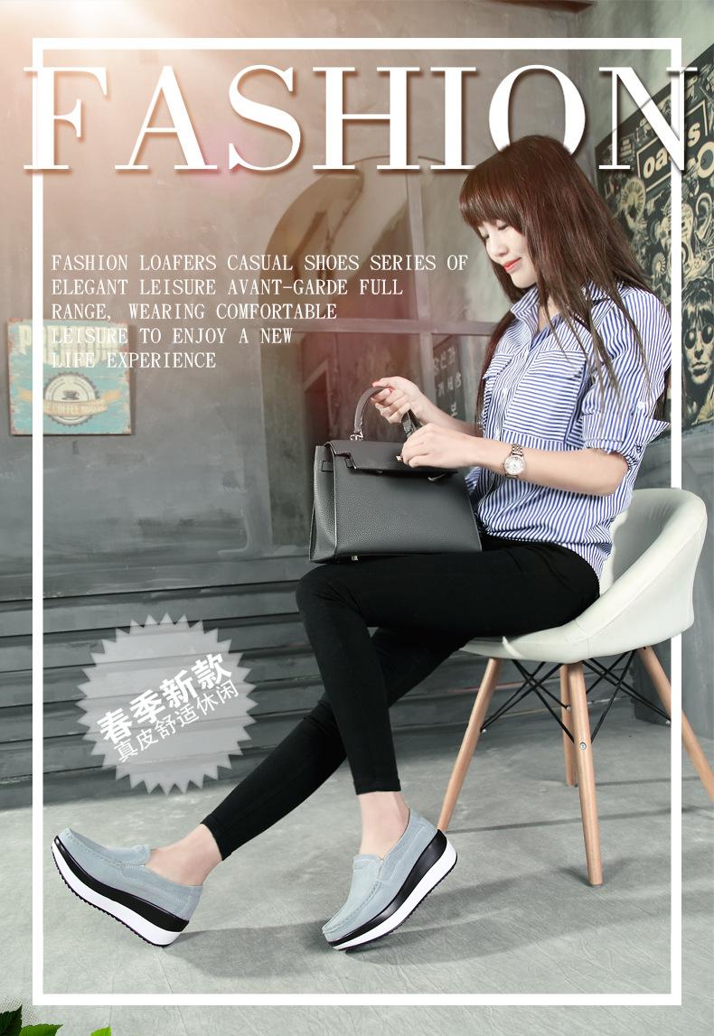 Primavera e Outono Sapatos Femininos Plataforma Borla Sola Grossa Sapatos Cunha para Mães Sapatos Baixos de Couro Sapatos de Balanço Beans Sapatos Femininos Tamanho Grande 42