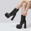 Botas de passarela de comércio exterior europeu e americano super salto alto de couro quadrado botas curtas novas botas de salto grosso à prova d'água plataforma moda feminina