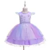 Vestido de princesa de malha colorida com costura para crianças europeias e americanas, vestido de festa de Natal e unicórnio para meninas