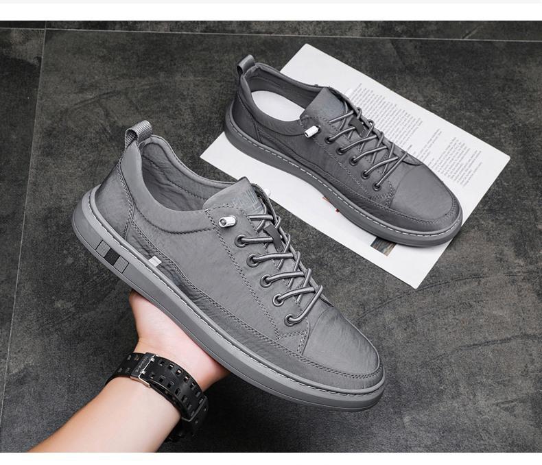 2024 Verão Novo Respirável Sapatos de Pano de Seda de Gelo Cor Sólida Lace-up Casual Confortável Tênis de Cano Baixo Sapatos Masculinos da Moda